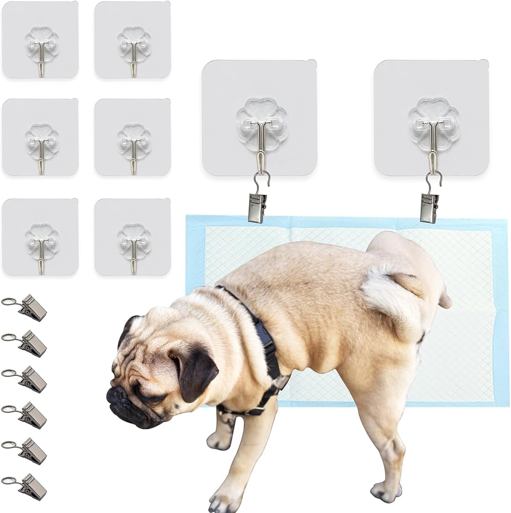 8 قطع من حامل وسادة التبول على الحائط لتدريب الكلاب على استخدام المرحاض في الأماكن المغلقة، حامل تبول الجراء مع خطاف ومشابك لاصقة قوية، حامل حائط لمنزل الكلاب من أي حجم لرفع أرجل الجراء