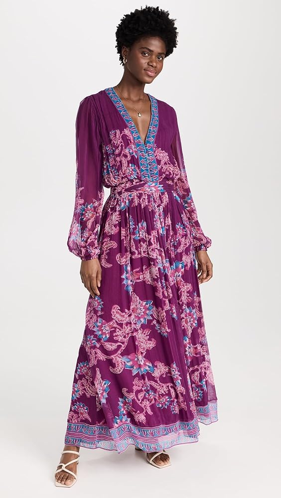 يعمل حسب الحجم. قد ترغب تلك الموجودة بين الأحجام في تقليل حجمها. ، مصمم بقصة مريحة وطول ماكسي. حزام الخصر المدخن يسمح بملاءمة أكثر مرونة. قماش الشيفون له يد خفيفة وملمس مجعد.