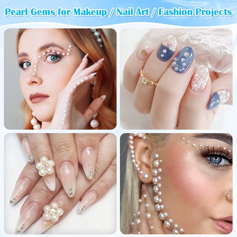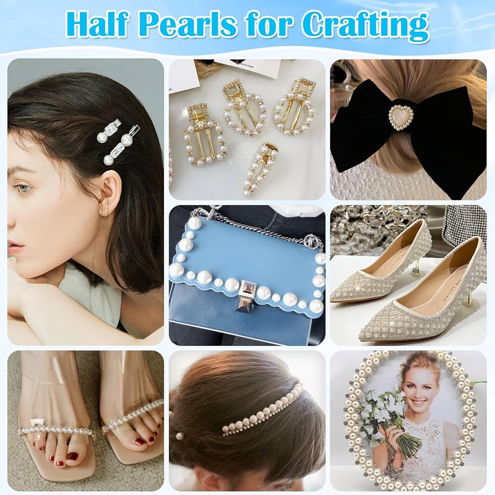 • 【Wide Application】These half pearls for crafting can be used for face makeup, eye, hair, nail art, body art as well as decorate clothes, shoes, hats, graduation cap decorations, tumblers, T-shirts , cellphone cases, scrapbooking, card making, DIY gifts, jewelry making, and so on.
