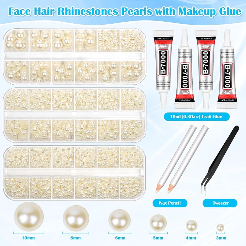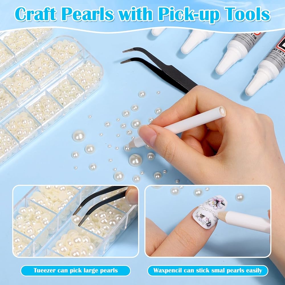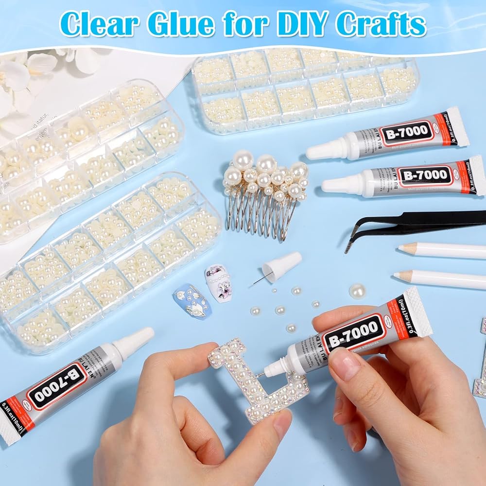 • 【Jewelry Glue with Pearls for Crafts】The flatback pearls kit comes with 3 box flatback pearls, 4pcs 15ml B7000 glue for crafts, 2pcs wax picker pencil, 1pcs tweezer. Perfect for various handmade artwork, decoration, makeup, nail art needs.
