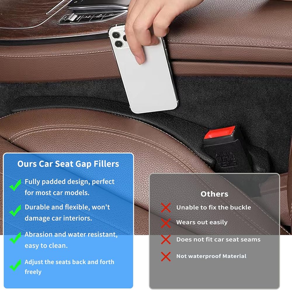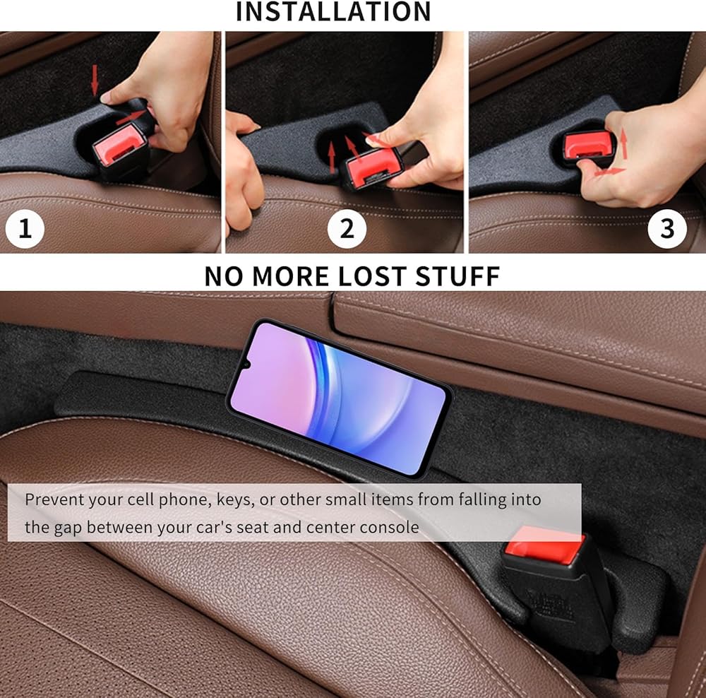 سهلة التركيب: التثبيت سهل للغاية مع حشوات الدرزات الجانبية لمقعد السيارة. يعمل شريط التماس الناعم والمرن على تأمين الفجوة بين المقعد ووحدة التحكم المركزية دون عائق. وتأتي الحزمة مع 2 حشو درزات مقعد السيارة، مثالية لكل من السائق والراكب.