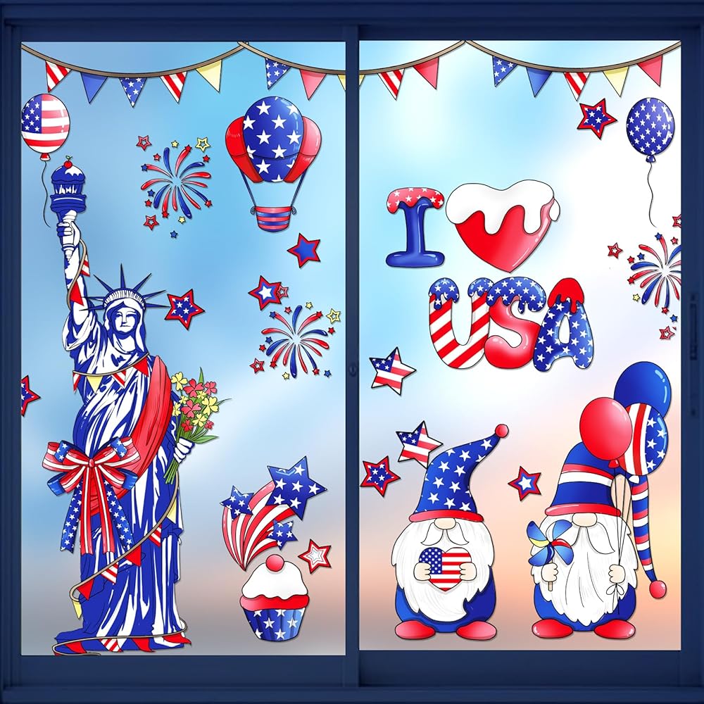 1. ملصقات نافذة الرابع من يوليو مناسبة للنوافذ والثلاجات والمرايا والألواح البيضاء. يمكن إزالتها بسهولة دون ترك أي بقايا.