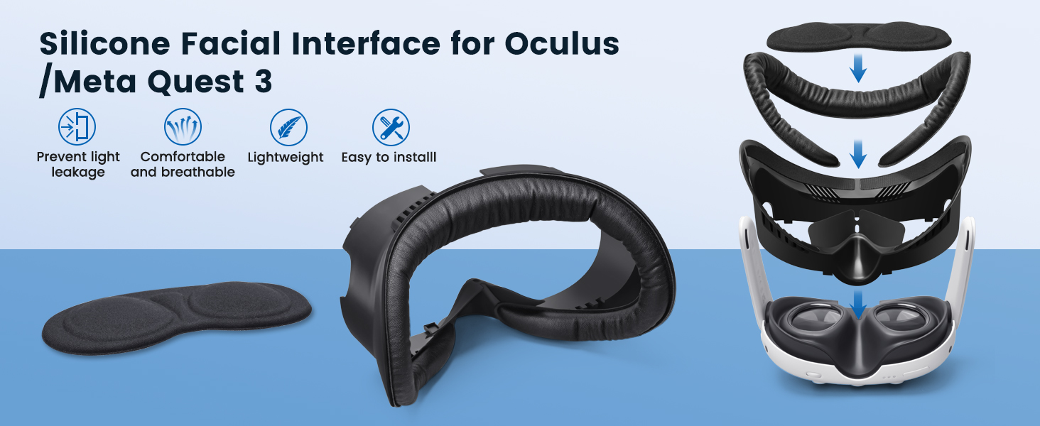 ➤【حافظ على نظافته ومقاومته للعرق】 لا يمتص العرق ويسهل تنظيفه. غطاء الوجه لجهاز Meta Quest 3 مصنوع من جلد البولي يوريثان وإسفنجة إسفنجية، وهي ناعمة ومريحة. يمكنها الحفاظ على نظافة سماعة الرأس Quest 3 VR وتجنب التعرض للعرق. ما عليك سوى مسح الواجهة لمشاركة سماعة الرأس مع الآخرين.