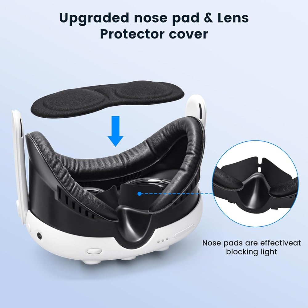 ➤[حجب الضوء من أجل غمر أكبر] تساعد واقيات الأنف المصنوعة من السيليكون القابلة للفصل على حجب الضوء عند الأنف، ولن تحتاج إلى القلق بشأن تسرب الضوء بعد الآن. تقليل الوهج وحجب الضوء الشارد حتى تتمكن من الحفاظ على أعمق غمر.