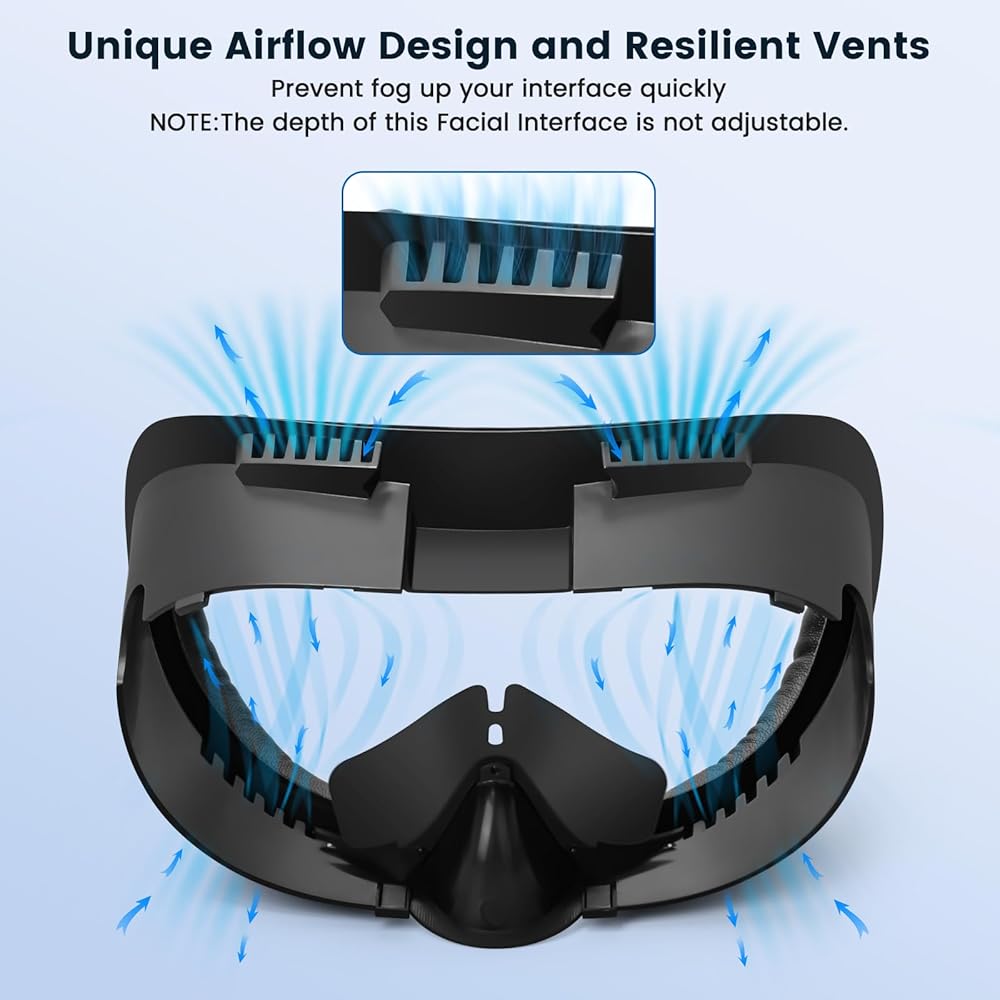 ➤[واجهة الوجه للتهوية واللياقة البدنية] تم تجهيز دعامة واجهة الوجه المطورة هذه بتصميم فريد من نوعه لتدفق الهواء. يمكن لمنافذ التهوية الموجودة في واجهة الوجه Quest 3 تحسين دوران الهواء، مما يطيل وقت اللعب. (غير مناسب لقاعدة الشحن الرسمية)