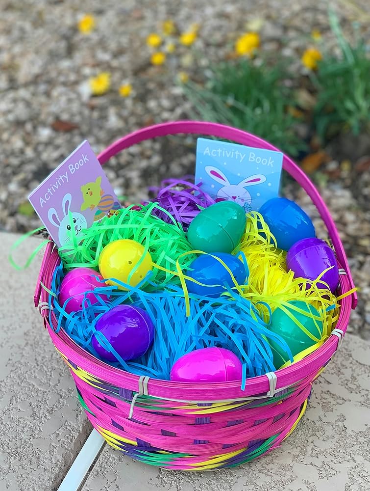 عشب حشو سلة عيد الفصح - 2 رطل من البلاستيك الملون لصيد بيض عيد الفصح