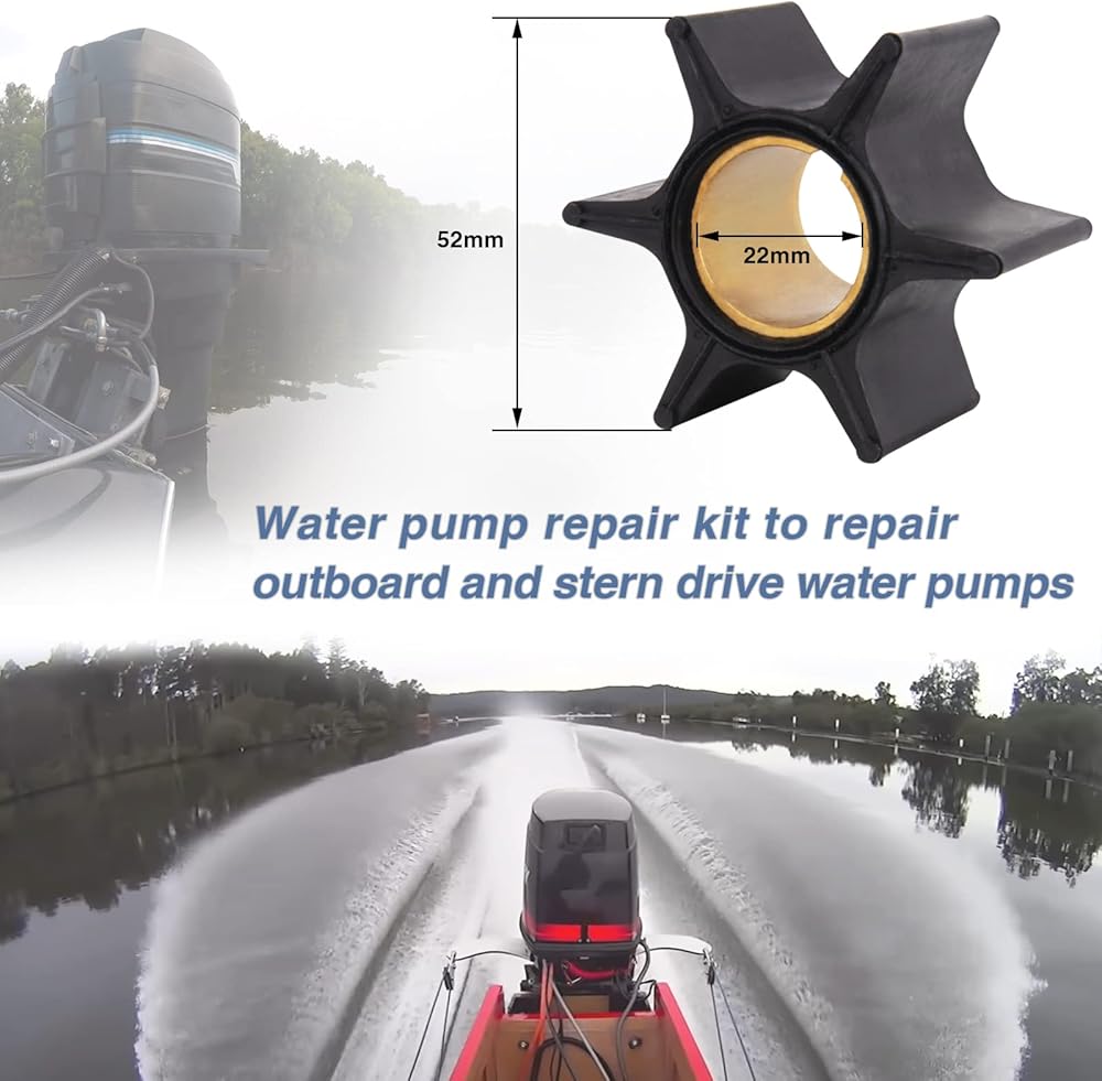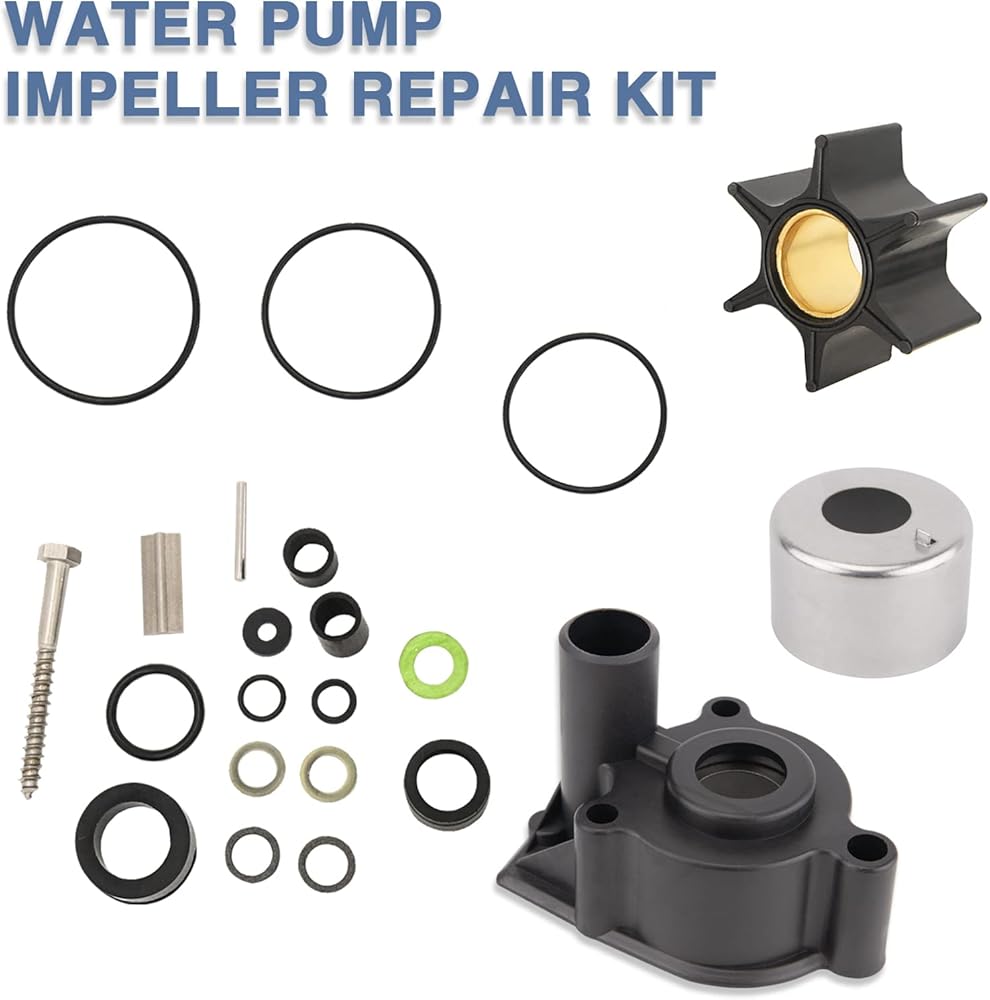 Compatible for mercruiser water pump impeller kit contains pump housing assembly, gaskets, o-ring, plates, impeller, key, face plates, water tube guide sleeve plus gear lube fill and vent screw o-rings. If there is any problem with our water pump impeller repair kit, please contact with us, we will help you solve the problem.