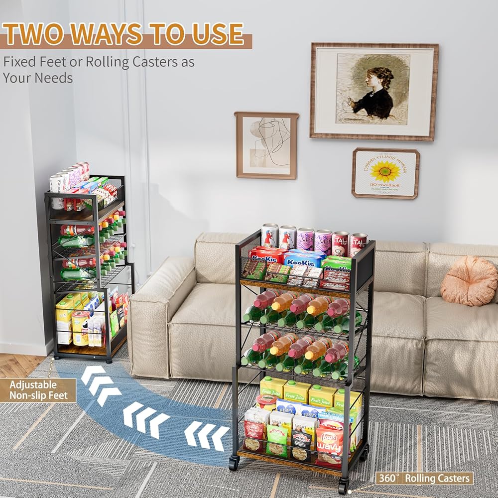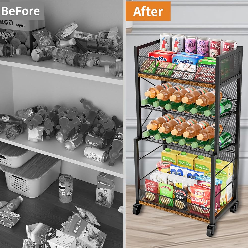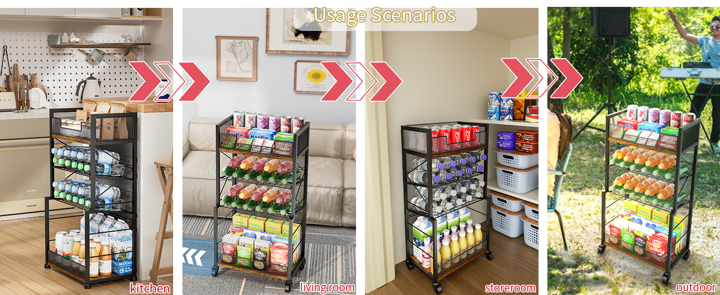 • 【طبقتان من شبكة سلكية منزلقة】توجد طبقتان من شرائح الشبكة السلكية في منتصف هذه العربة، طبقة واحدة يمكن أن تتحمل عناصر وزنها 40 رطلًا، وليس من السهل تشويهها، ويمكن للزاوية المائلة وضع المياه المعدنية والمشروبات المعبأة في زجاجات، ويمكنها يمكن أيضًا وضعها في المطبخ للفواكه والخضروات التي يسهل الوصول إليها، حيث توجد أسلاك حديدية حول الجانبين، فلا داعي للقلق بشأن تدحرج أغراضك للأسفل. بالنسبة للعناصر الأكبر حجمًا، ما عليك سوى إزالة الدرج المنزلق، وهو الحل الأمثل لتحديات التخزين لديك.