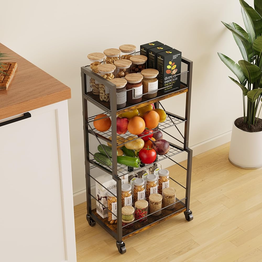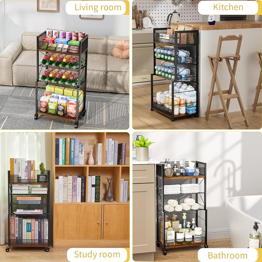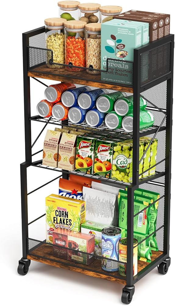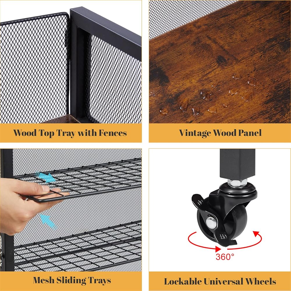 منظم عربة تخزين دوارة من 4 طبقات من Hongtamoya مع 2 صينية منزلقة شبكية، علب، مشروبات، أرفف منظم للوجبات الخفيفة، عربة أدوات قديمة على عجلات قابلة للقفل للمطبخ، الحمام، الدراسة، حجرة المؤن