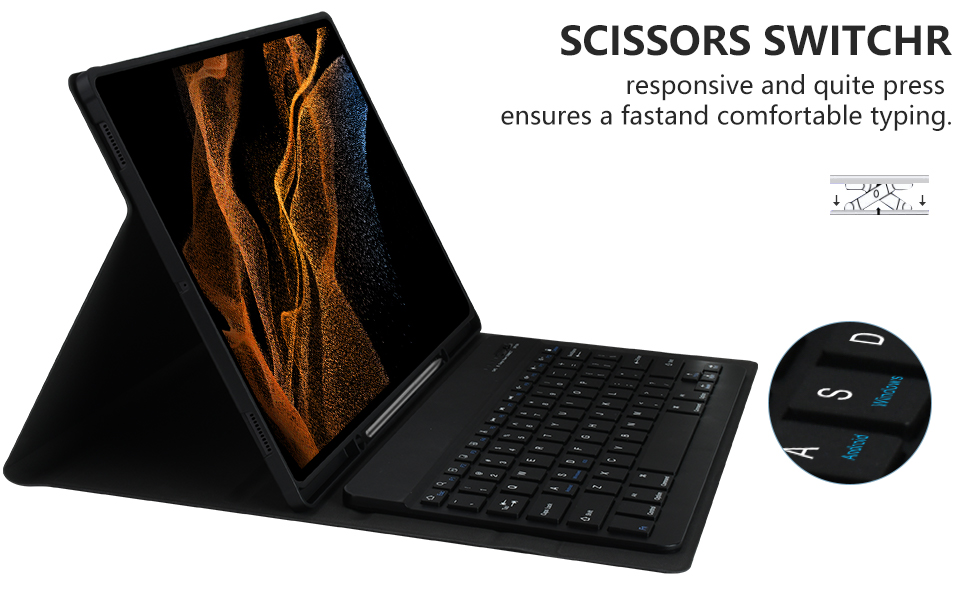 • ⌨【لوحة مفاتيح قابلة للفصل مغناطيسيًا】 تأتي حافظة Samsung Galaxy Tab S8 Ultra مقاس 14.6 بوصة مع لوحة مفاتيح بلوتوث مغناطيسية قابلة للفصل. يمكن ربط لوحة المفاتيح المغناطيسية الرفيعة للغاية وخفيفة الوزن بشكل جيد بالجراب، مما يساعد الجهاز اللوحي على الوقوف بشكل أفضل، وتحويل الجهاز اللوحي إلى كمبيوتر محمول صغير في أقل من ثانية. يمكنك تحريك موضع لوحة المفاتيح وتغييره في أي وقت وفقًا لتفضيلاتك المعتادة.