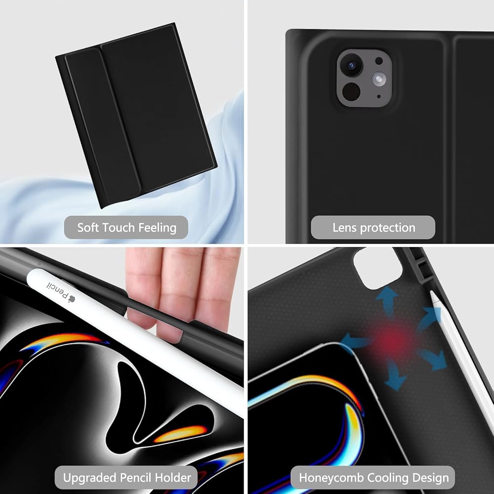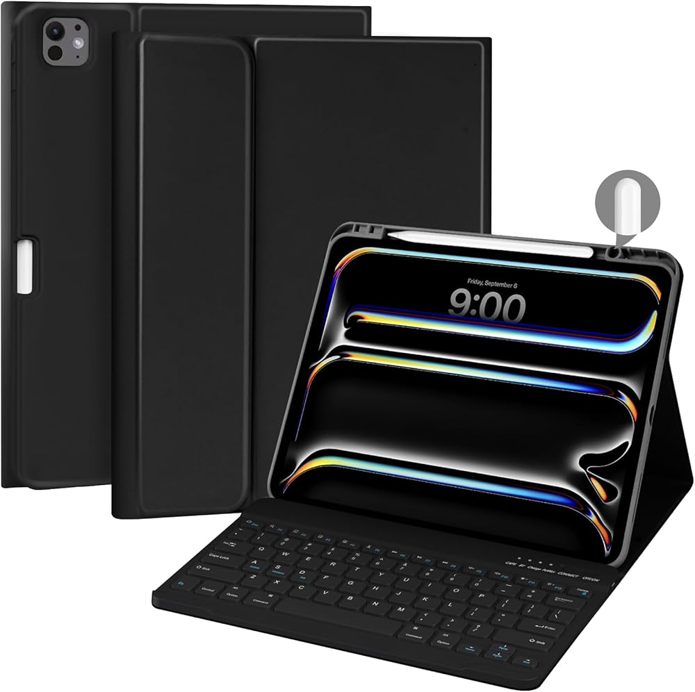 حافظة aMZCaSE لجهاز iPad Pro 13 بوصة 2024 مع لوحة مفاتيح، M4 لجهاز iPad 13 Pro حافظة لوحة مفاتيح مع بلوتوث لاسلكي قابل للفصل ولوحة مفاتيح ذكية للنوم/الاستيقاظ وحامل قلم لجهاز iPad Pro 13 بوصة، أسود