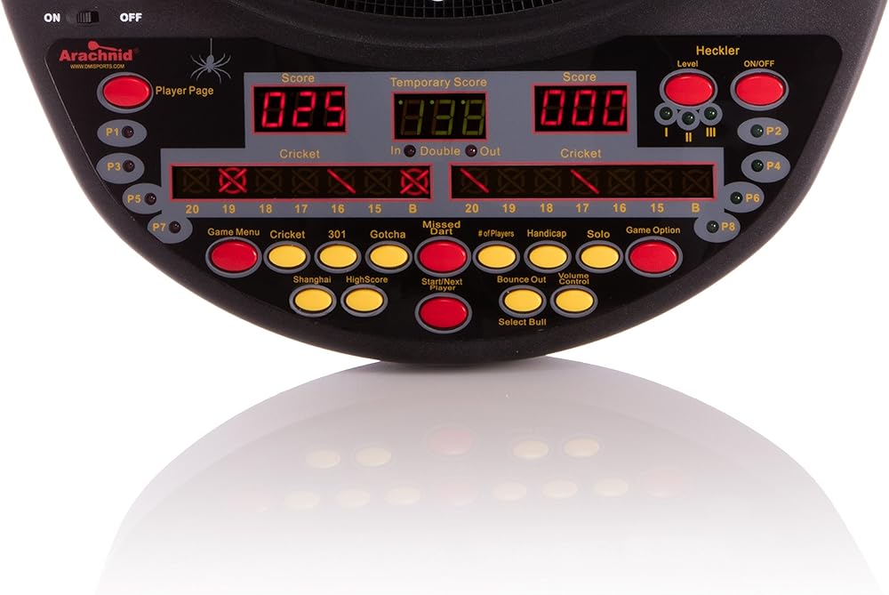 Up to eight players with two - X/O cricket displays and three score displays. The ARACHNID trademark is a registered trademark owned by Arachnid 360 LLC and used by Escalade Sports pursuant to license