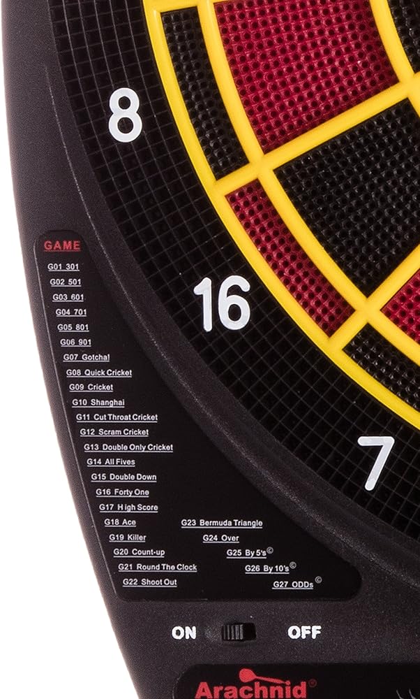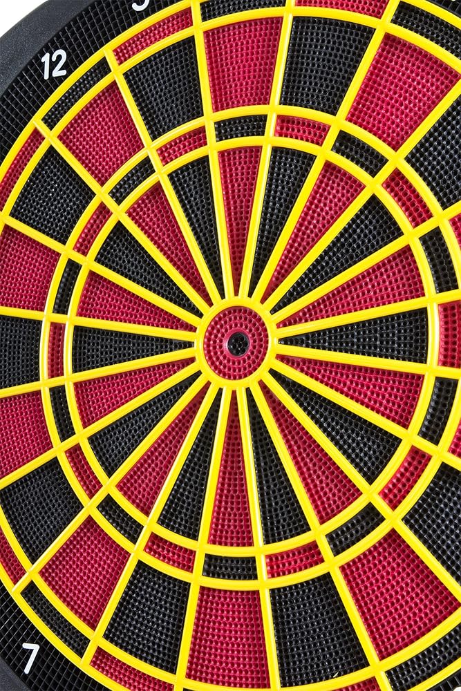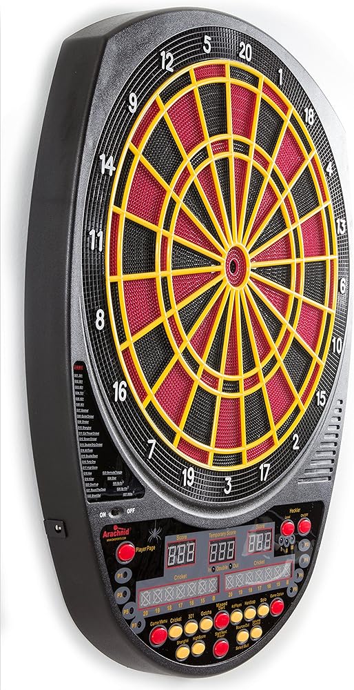 The Arachnid Inter-Active 3000 features a 13 inch target area for recreational play. The classic red, black and yellow of the target area are trademarked, tournament colors for a classic look that you can only get from Arachnid! The Inter-Active 3000 board features reduced bounce-outs with micro thin segment dividers and exceptional accuracy with responsive sensors.