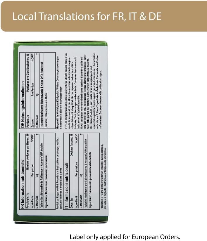 د-مانوز نقي، وليس مزيجًا. يحتوي Waterfall D-Mannose فقط على أجود أنواع D-Mannose المخمرة بشكل طبيعي من خشب البتولا بدون أي مكونات أخرى. تعد منتجات د-مانوز النقي أكثر ملاءمة للاستهلاك بمستويات أعلى من منتجات د-مانوز المخلوطة بالفيتامينات، مما يسمح بمرونة أكبر حول الجرعات. يؤدي اختيار منتج D-mannose النقي أيضًا إلى إزالة الحاجة إلى إعادة النظر في المكملات الغذائية/روتينات الفيتامينات الموجودة عند تقديم منتج D-mannose.