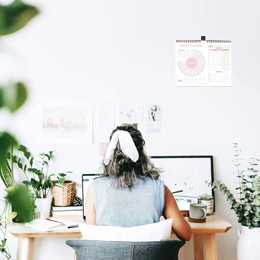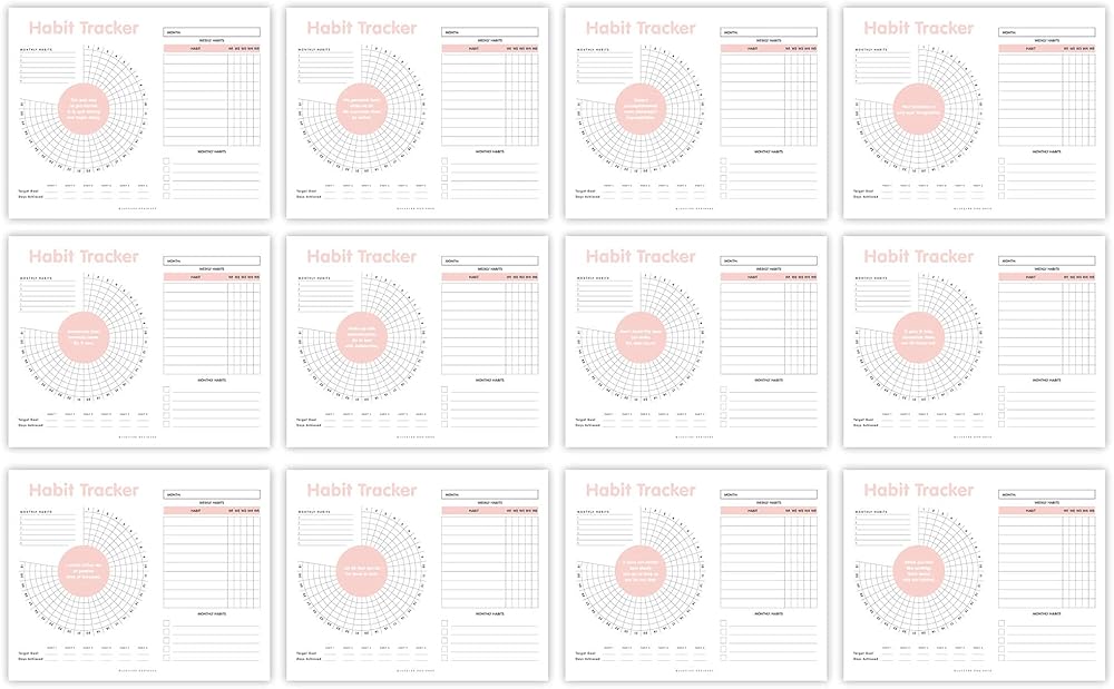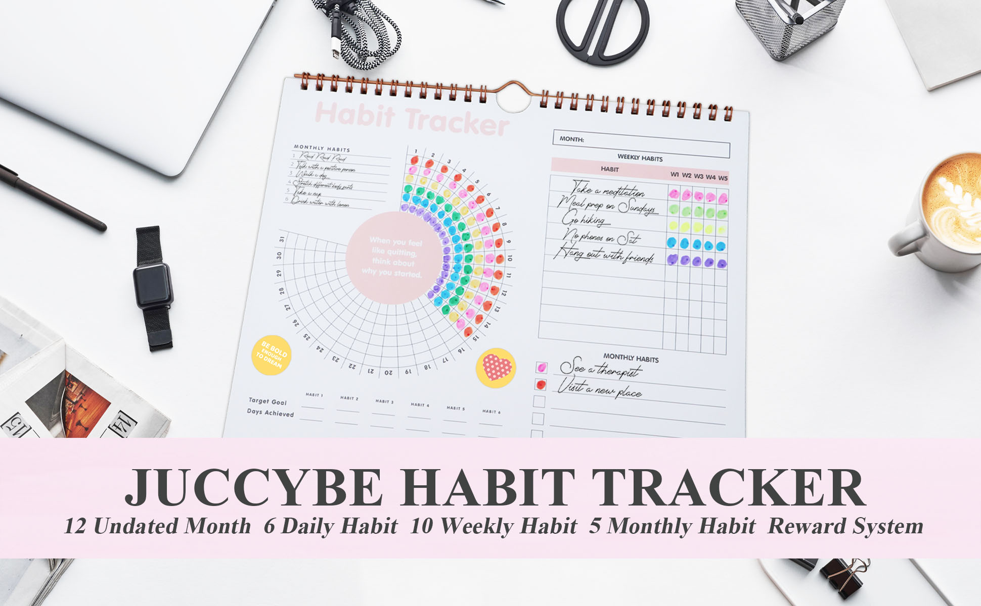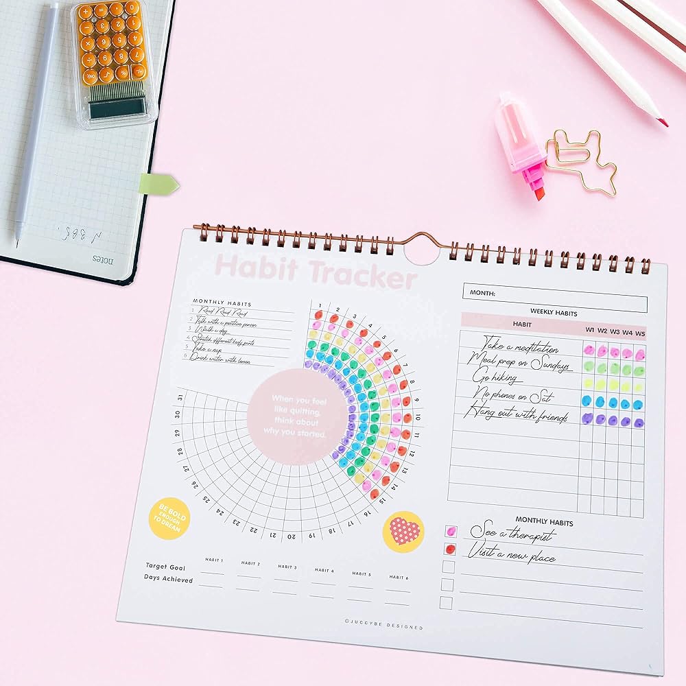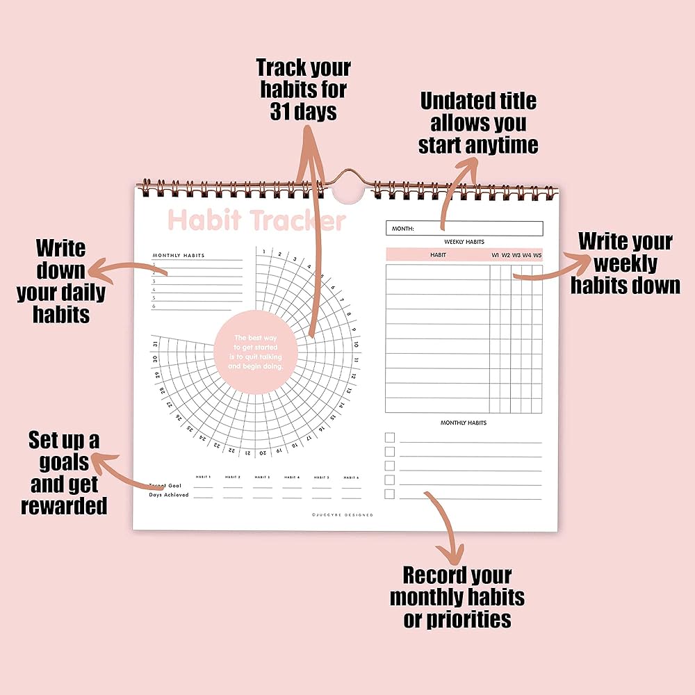 تقويم تعقب العادة - مخطط تتبع الأهداف يوميًا وأسبوعيًا وشهريًا، مفكرة يومية مع ربطة حلزونية ذهبية وشماعة، قائمة مرجعية للمهام، غير مؤرخة 12 شهرًا، 8 × 10 بوصة - مجموعة Juccybe Polka Dot