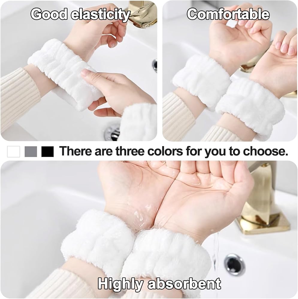 أساور المعصم الخاصة بنا مصنوعة بشكل جيد، وناعمة وصديقة للبشرة، ومريحة في الارتداء، وتمنع رش الماء على الحوض أثناء غسل وجهك، كما تمنع الماء من الجريان على الذراعين والارتداء على الملابس!