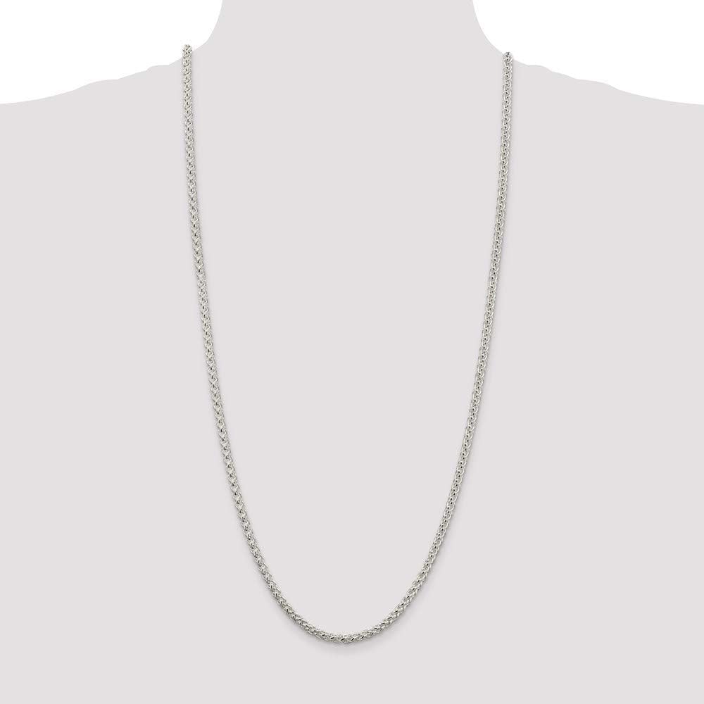 Sterling Silver 4mm Round Spiga Chain. Material: Primary - Purity:925|Finish:Polished|Length of Item:30 in|Chain Length:30 in|Chain Type:Spiga (Wheat)|Chain Width:4 mm|Clasp /Connector:Lobster|Feature:Solid|Manufacturing Process:Machine Made|Material: Primary:Sterling Silver|Width of Item:4 mm|Product Type:Jewelry|Jewelry Type:Necklaces|Sold By Unit:Each|Necklace Type:Chains|Profile Type:Round|Material: Primary - Color:White