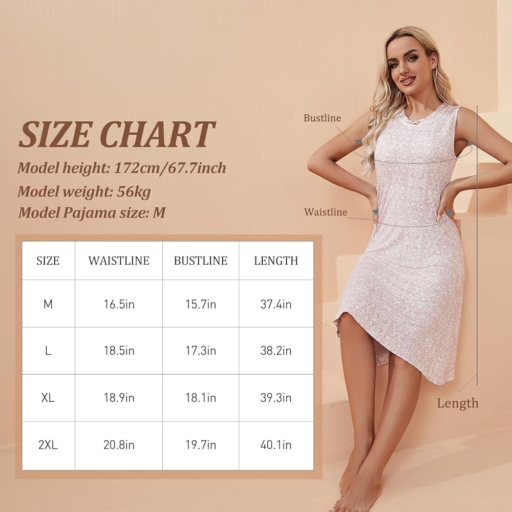 • 【الأبعاد】: إليك 4 مقاسات من فساتين السهرة الصيفية للسيدات: M/L/XL/XXL. سوف تجد ملابس نوم مناسبة تمامًا بطول منتصف الركبة من مقاساتنا. يرجى التحقق بعناية من جدول المقاسات قبل الطلب.