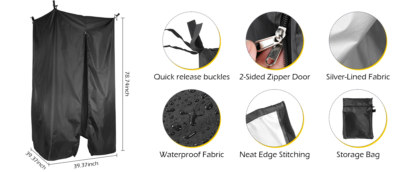 تصميم واسع: بالمقارنة مع خيمة الخصوصية الأخرى الموجودة في السوق، قمنا بزيادة الطول إلى 39.3 بوصة عرض × 39.3 بوصة عمق × 78.7 بوصة ارتفاع، مما يوفر لك المزيد من المساحة للجلوس وتغيير الملابس. تتيح لك الأجهزة المتضمنة توصيل الجزء المنسدل محطة الخصوصية إلى قمم بيميني أو المظلة العلوية أو الجانب السفلي من السقف الصلب.
