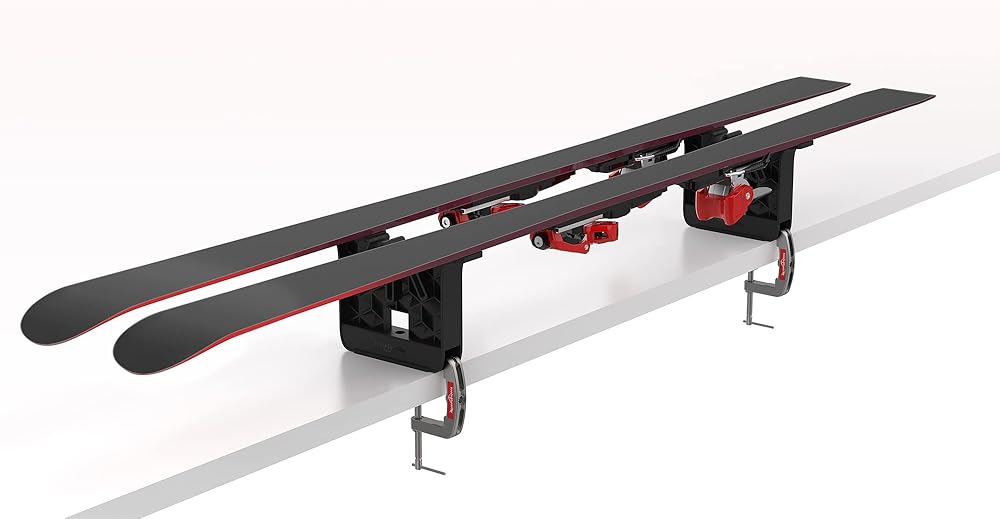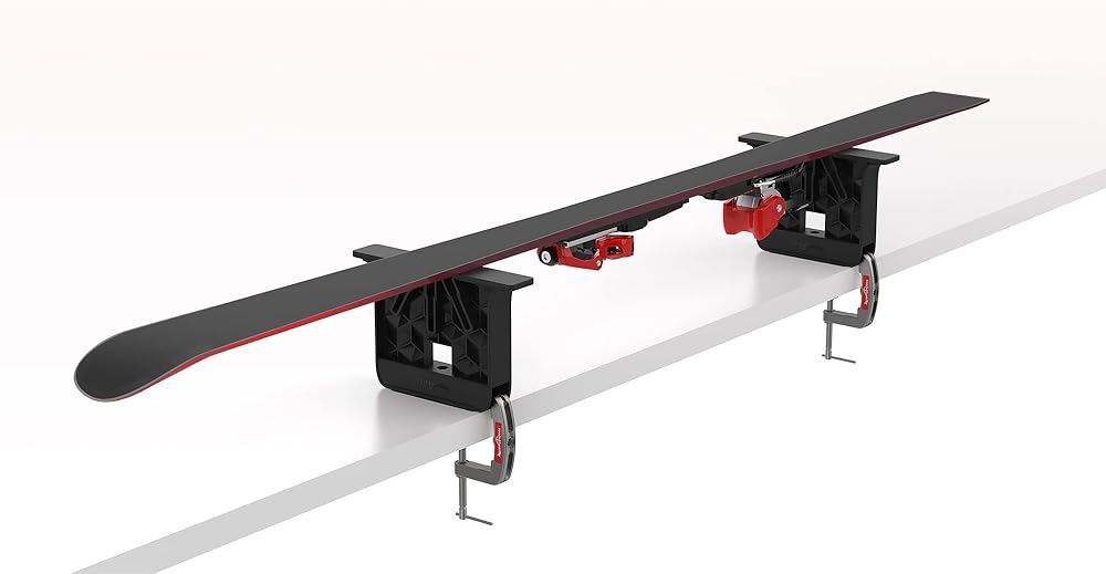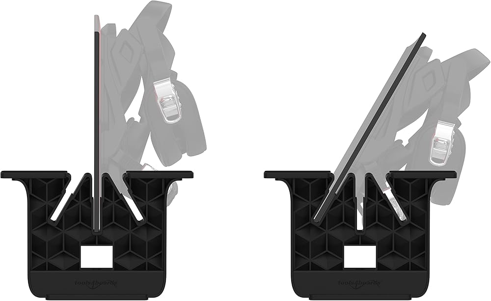 Tools4Boards Compact Tuning Vises makes it easy to properly prep skis and snowboards for a more enjoyable ride. 10 x 7 x 3" (254 x 178 x 76 mm) dimensions easily fits in zippered bag or wax box. Isotropic plate-lattice (one of the strongest structures known) provides rock-solid stiffness with thin wall sections to reduce the amount of material used. Extra-wide platforms fully support two of even the widest skis, or any size snowboard. Soft, durable Alcryn® melt-processible rubber pads are molded onto a lightweight, impact-resistant Lexan® polycarbonate frame to maximize friction for unprecedented grip when cleaning, waxing and brushing. Side edge slots position ski or snowboard at 60°, 90° or 120° depending on user preference. Dual-width slots – ski is placed in wider, upper portion of slot for unobstructed edge access, while snowboard drops down into narrow lower portion for increased stability. For a more secure hold simply slide supports towards each other to wedge ski or snowboard in slots. 6 ¾” (171 mm) height provides ample clearance for all bindings. Use Fix metal c-clamps (provided) to securely fasten supports to any tabletop with a thickness of 2 ½" (635 mm) or less, or use any length 6" (150 mm) bar clamp (sold separately) for thicker tabletops. Compatible with Tools4Boards Lightning Stand, Lite Stand or Tool Mount Rail for quick length adjustment using T-bolts with adjustable knobs (sold separately) for quick length adjustment.