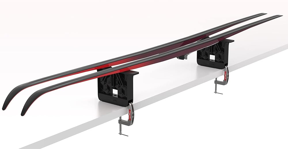 • Dual-width slots – ski is placed in wider, upper portion of slot for unobstructed edge access, while snowboard drops down into narrow lower portion for increased stability. For a more secure hold simply slide supports towards each other to wedge ski or snowboard in slots 6 ¾” (171 mm) height provides ample clearance for all bindings
