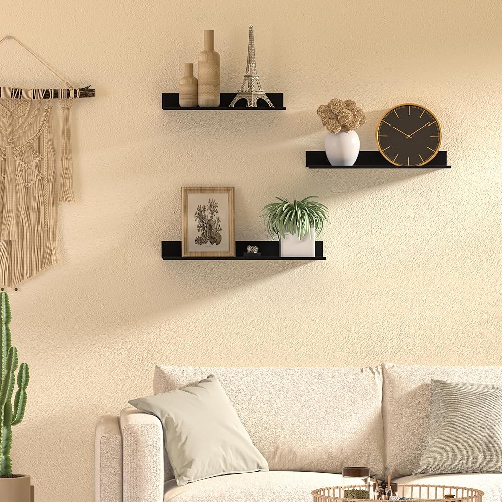 【طرق عرض متعددة】تتكون مجموعتنا من 3 أرفف جدارية بأحجام مختلفة. كبير: 15.7*4.7 بوصة، متوسط: 13.7*4.7 بوصة، صغير: 11.8*4.7 بوصة. يمكنك دمجها وفقًا لتفضيلاتك واحتياجاتك المختلفة لإنشاء أسلوب التصميم الخاص بك.