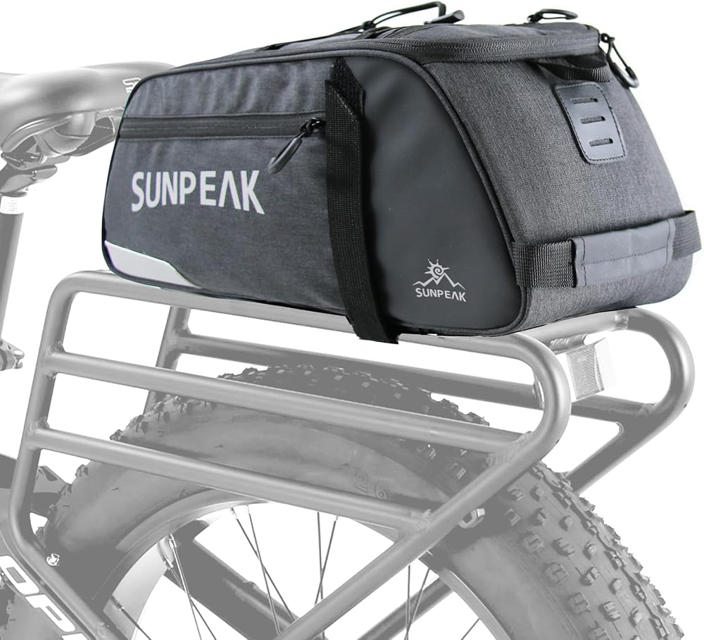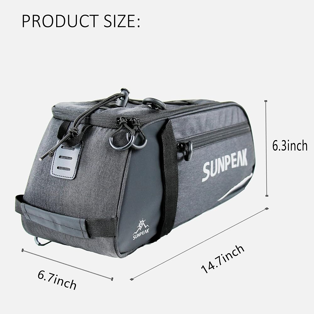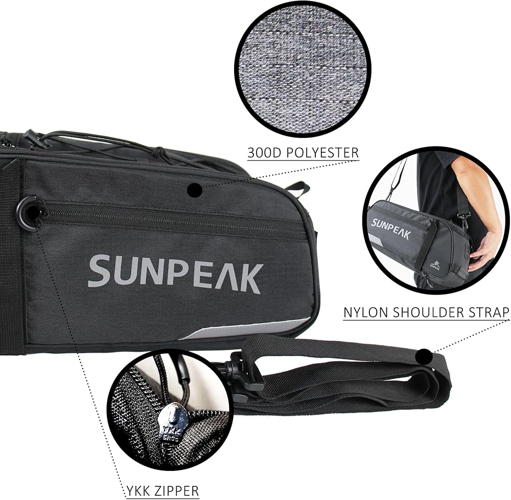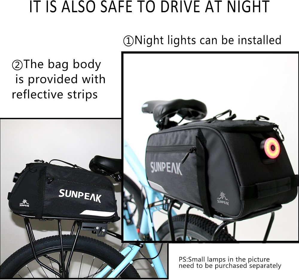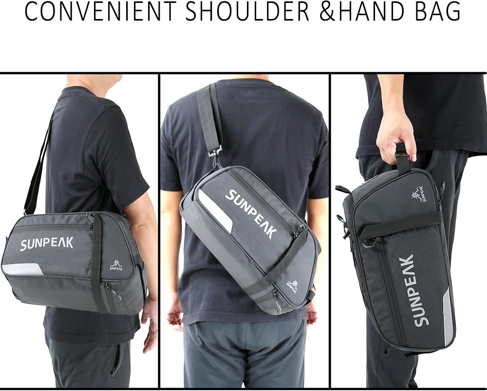 ★Large Capacity & Humanized design – 9 Liters (2.38 gallon) capacity, Multiple compartments, ideal SUNPEAK travel rear rack bag for daily essentials, bike tools, clothes, cycling accessories and multiple day supplies.