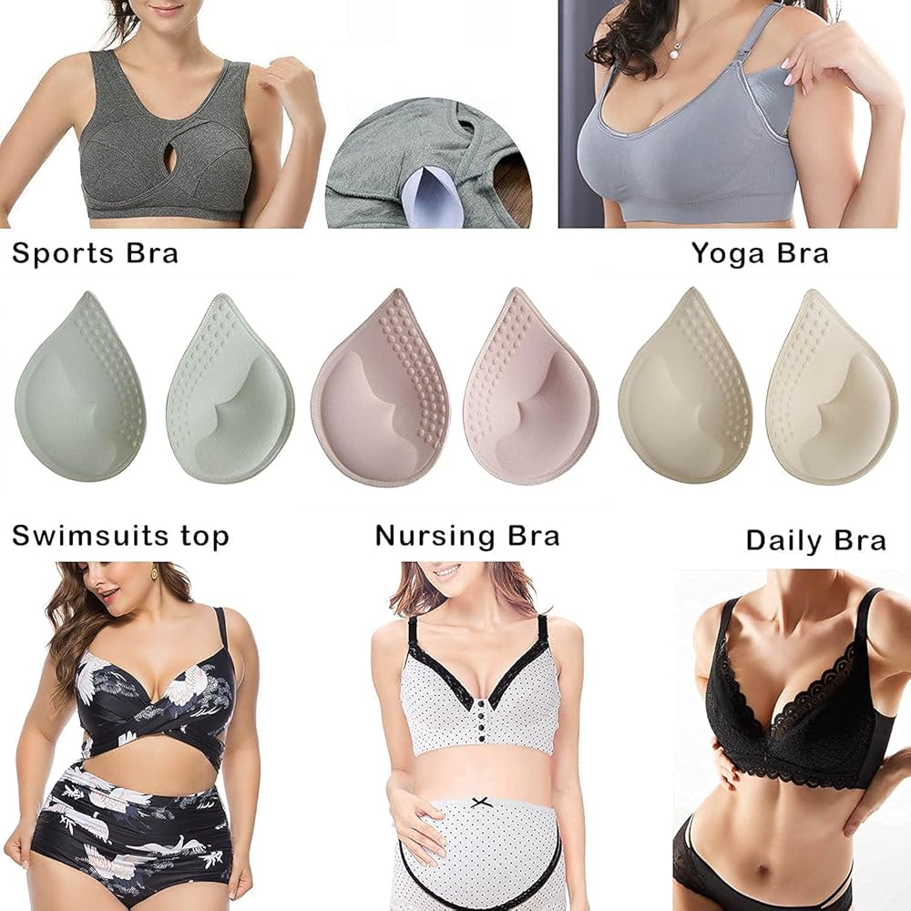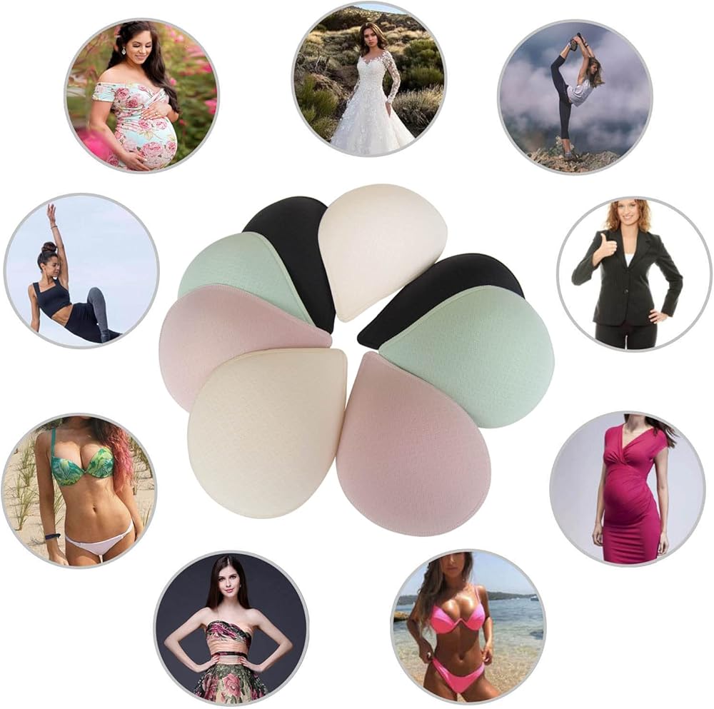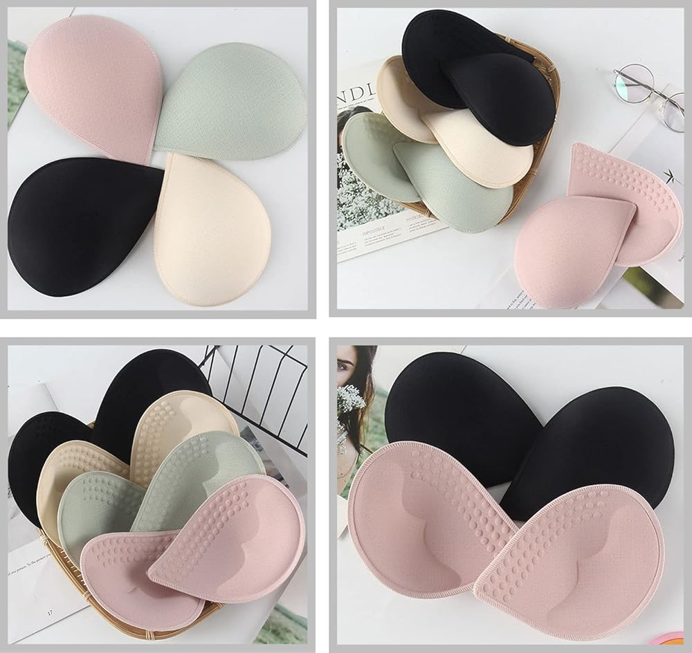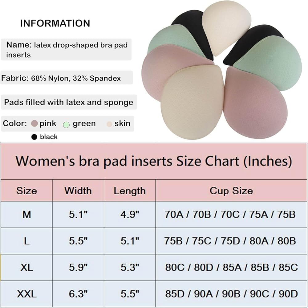 🟢5. The drop-shaped latex bra inserts has 4 different sizes to choose with 4 different colors; skin, pink,black and aqua are pleasant color for women and girls, and can be used with clothes of various colors, and they are not visible from the outside. Very suitable for sports bra, Bikini top, nursing bra, swimsuits, bathing suit, strapless dresses, wedding dresses, and daily bras.