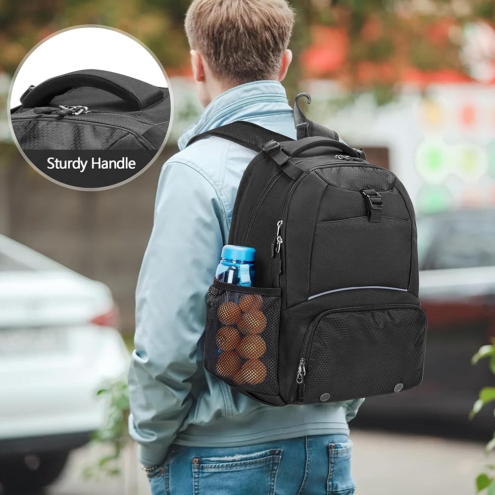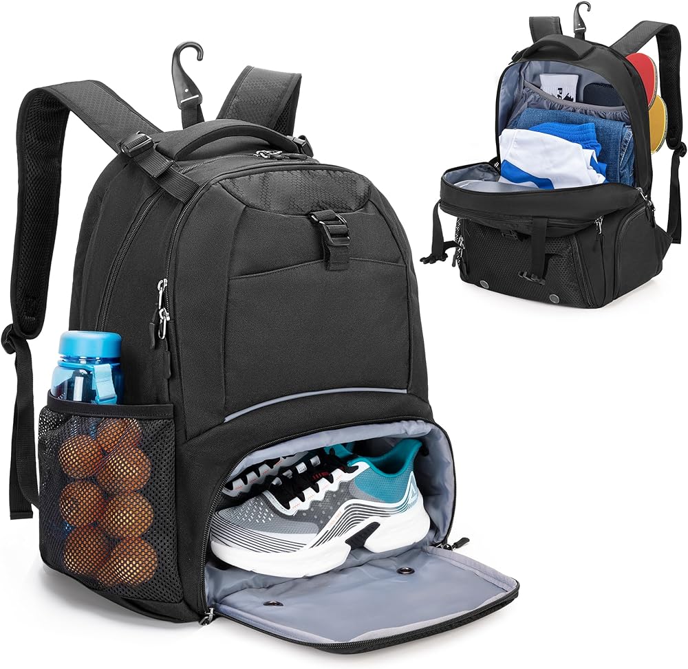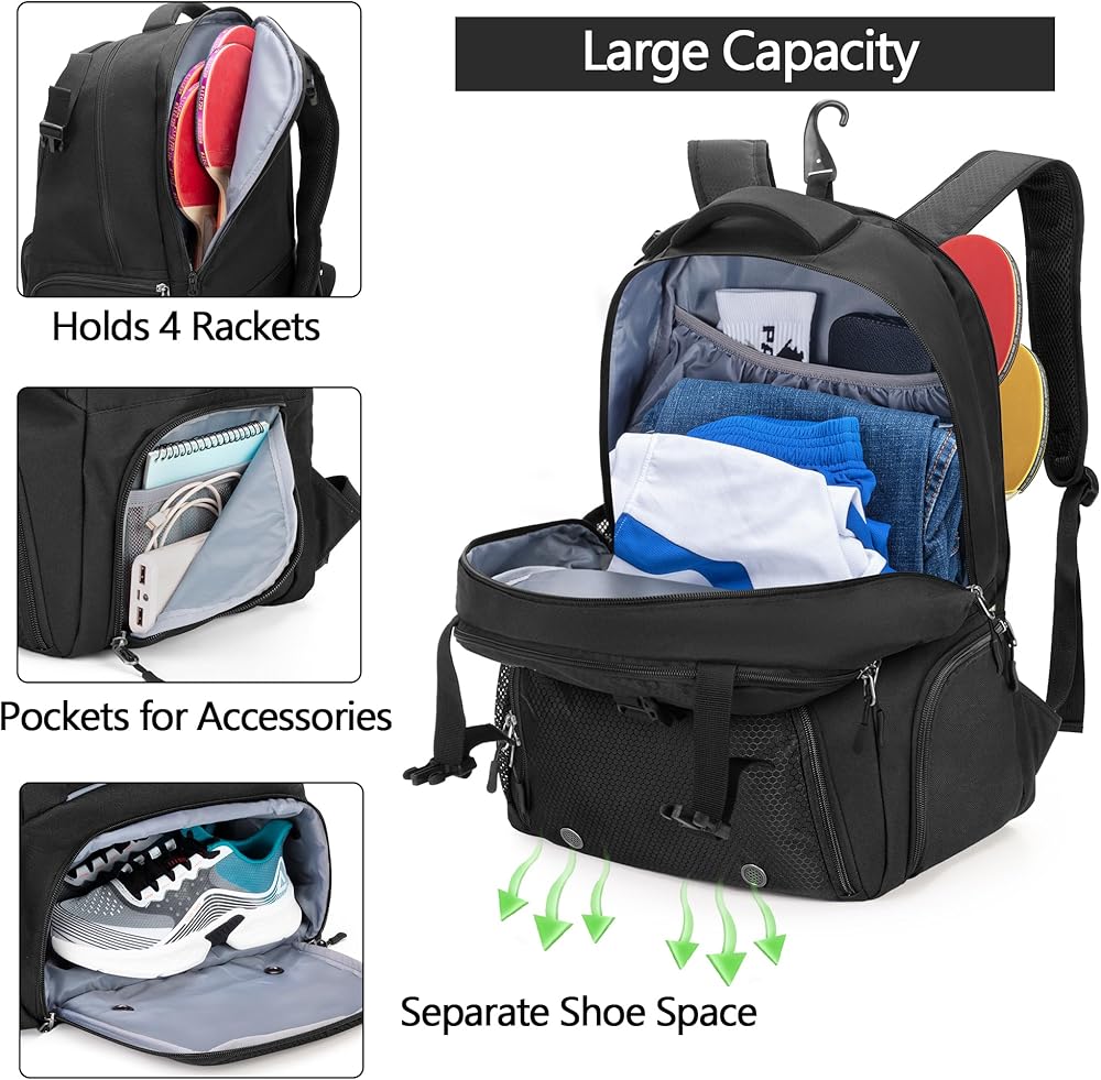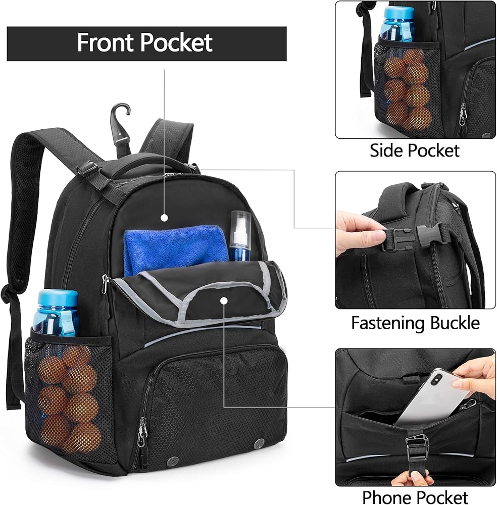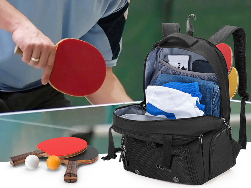 سعة كبيرة: يمكن للجيب الرئيسي مع الحقيبة الداخلية المرنة حمل القميص الثقيل وكرات تنس الطاولة وشريط الإمساك والمناشف وما إلى ذلك. تم تصميم الجيب الأمامي والجانبي المخفي بسحاب لعنصرك المهم. يمكن للجيب الجانبي الشبكي حمل زجاجة رياضية كبيرة.