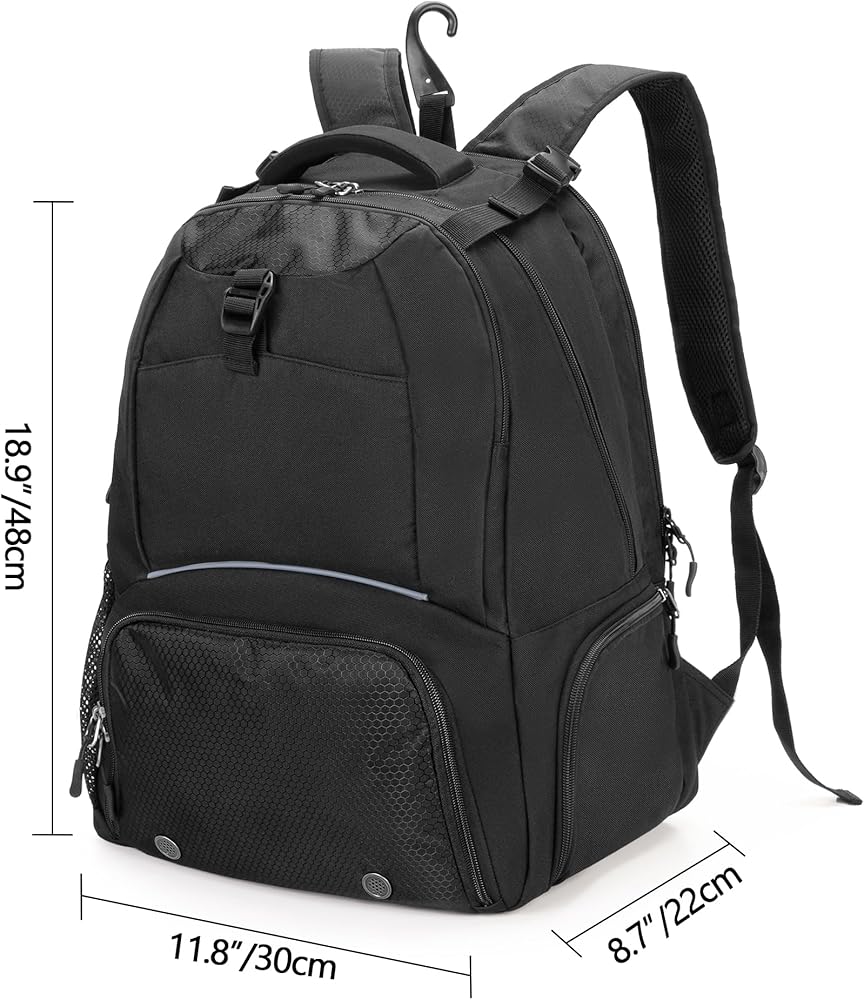 سهل الاستخدام: الجزء السفلي من الأحذية جيد التهوية يفصل الحذاء المتسخ عن باقي المحتويات. يوفر المقبض سهل الحمل وأحزمة الكتف المبطنة والدعم القطني المبطن تجربة حمل مريحة.