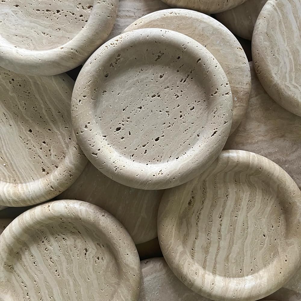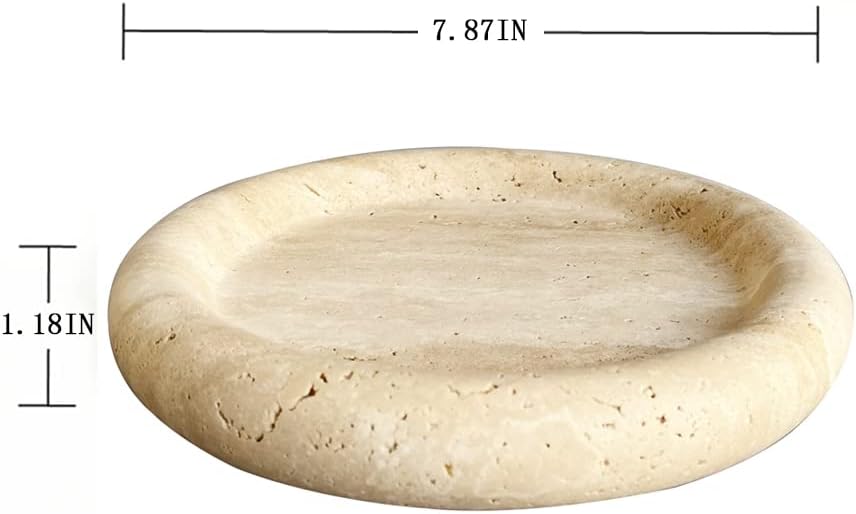 • [المادة والحجم]: الحجم 7.87 بوصة × 7.87 بوصة × 1.18 بوصة (القطر × الارتفاع)، مصنوع من الحجر الجيري الرخامي الطبيعي.