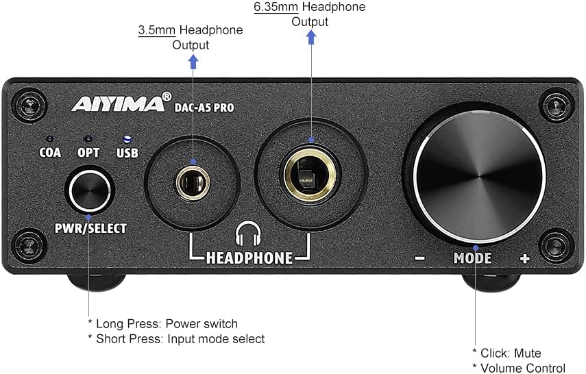 ترقية AIYIMA DAC مضخم سماعة الرأس DAC-A5pro جهاز فك ترميز الصوت بصري/محوري/USB رقمي إلى محول تناظري 24 بت/192 كيلو هرتز CM6642+ESS9018K2M+OPA2134 NE5532+TPA6120