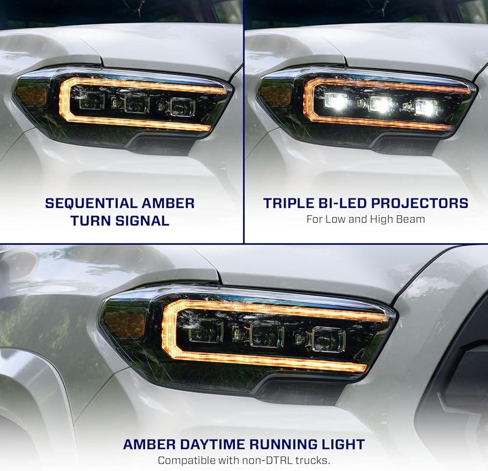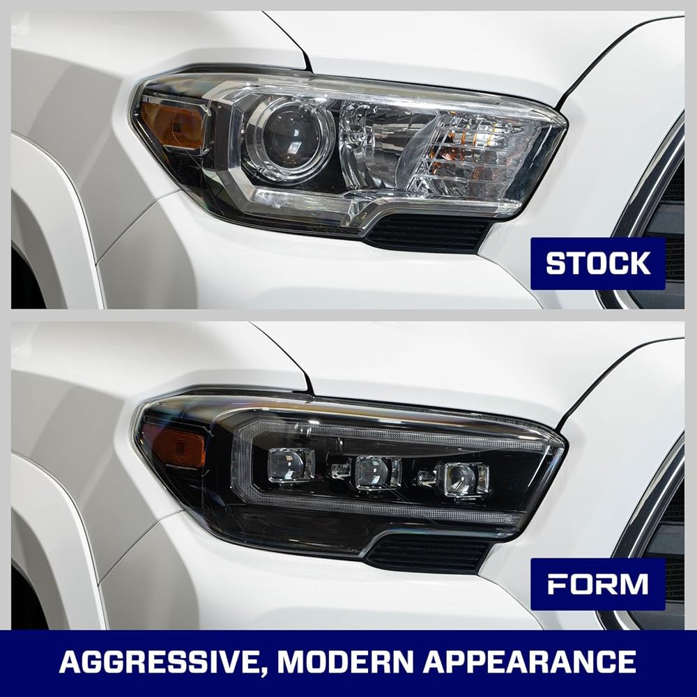 الوقوف - امنح شاحنتك مظهرًا عصريًا أكثر عدوانية مع المصابيح الأمامية LED المتسلسلة من Form Lighting. ارفع مستوى الواجهة الأمامية لديك باستخدام أجهزة عرض ثلاثية ثنائية LED، وإشارات الانعطاف التسلسلية، وتسلسل بدء التشغيل، وضوء التشغيل LED الكهرماني، وكلها متوافقة مع Toyota، Tacoma 2016 إلى 2023.