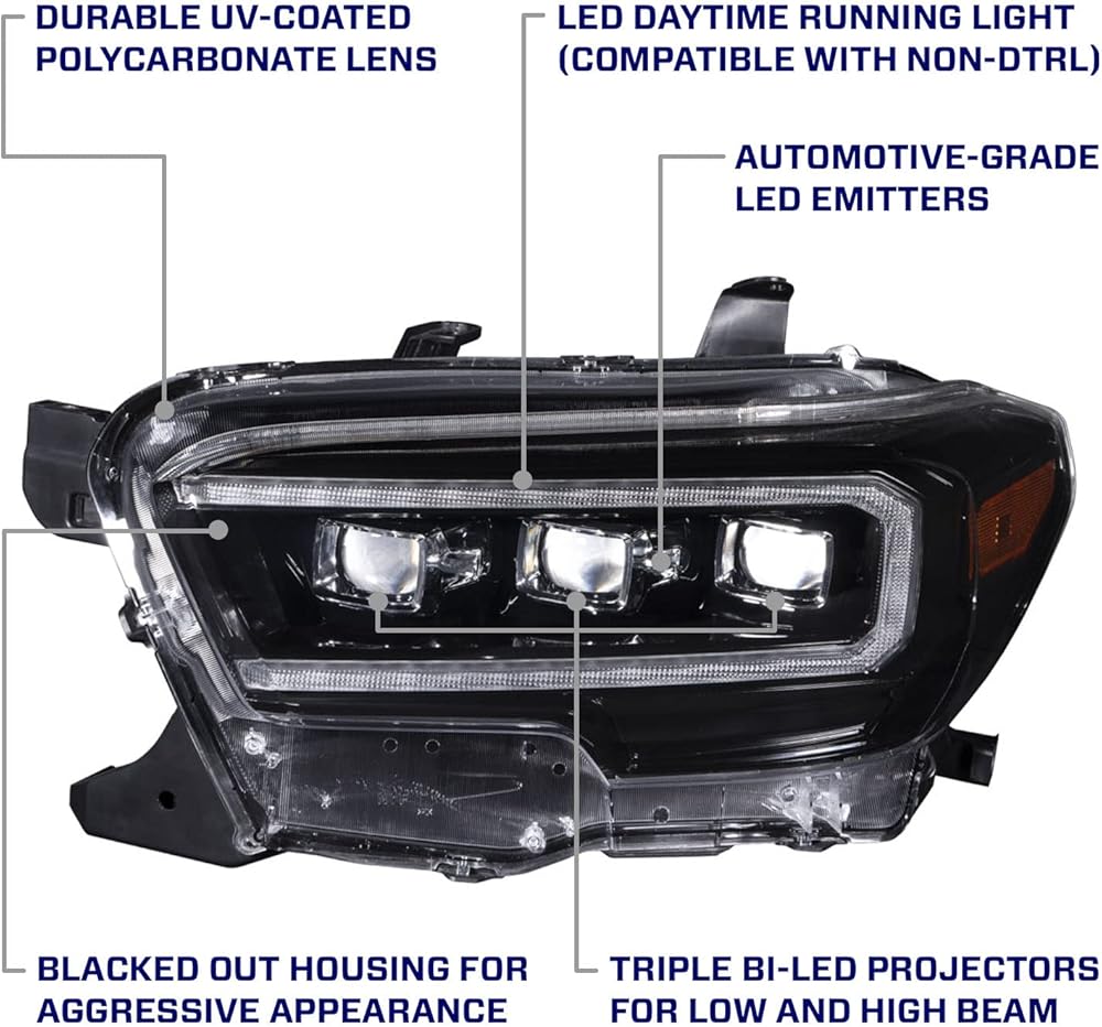 رؤية محسنة - هذه المصابيح الأمامية مجهزة بثلاثة أجهزة عرض ثنائية LED، مما يوفر ترقية كبيرة في الإخراج لكل من الشعاع المنخفض والشعاع العالي، مع قطع حاد وعرض واسع وكثافة عالية.
