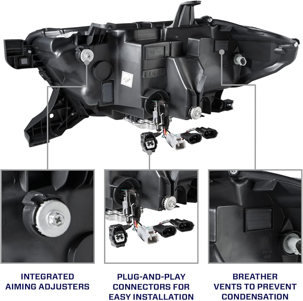 تركيب بسيط للتوصيل والتشغيل - هذه المصابيح الأمامية قابلة للتوصيل والتشغيل بالكامل وتوصيلها بموصل المصابيح الأمامية في المصنع، دون الحاجة إلى تعديلات الأسلاك. لا توجد أخطاء أو وميض أو وميض مفرط! يتم أيضًا تضمين المحولات إذا كانت شاحنتك لا تحتوي على مصابيح تشغيل نهارية (غير DTRL).