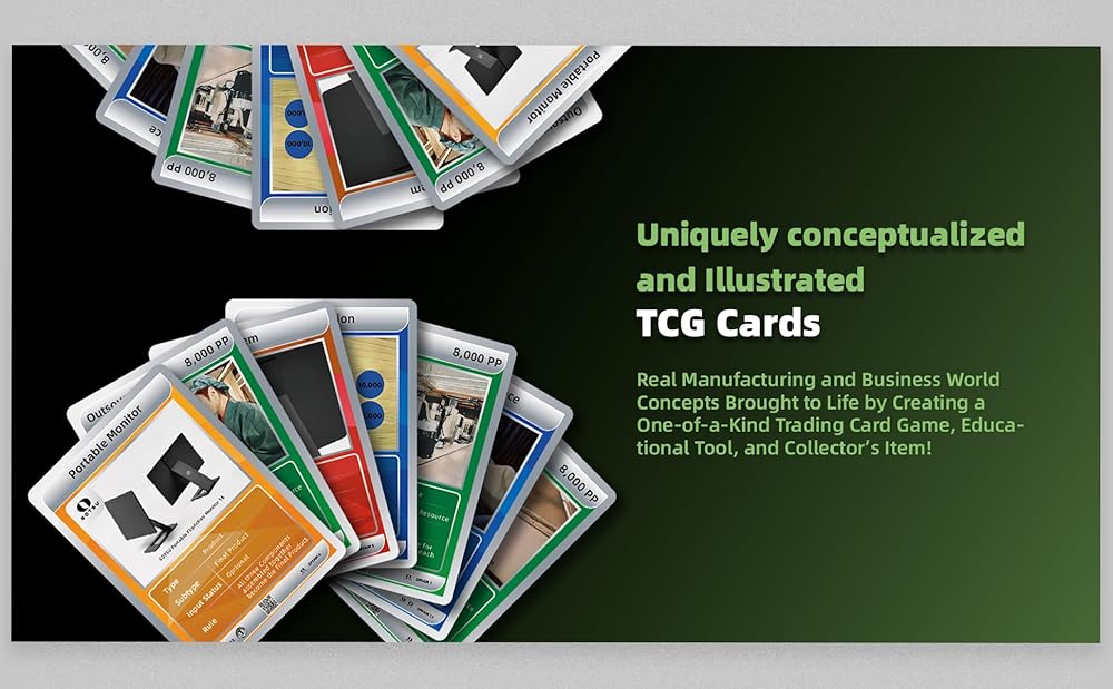 • تم جلب مفاهيم التصنيع وعالم الأعمال الحقيقية إلى الحياة من خلال إنشاء لعبة بطاقات تجارية فريدة من نوعها، وأداة تعليمية، وعنصر لهواة الجمع!