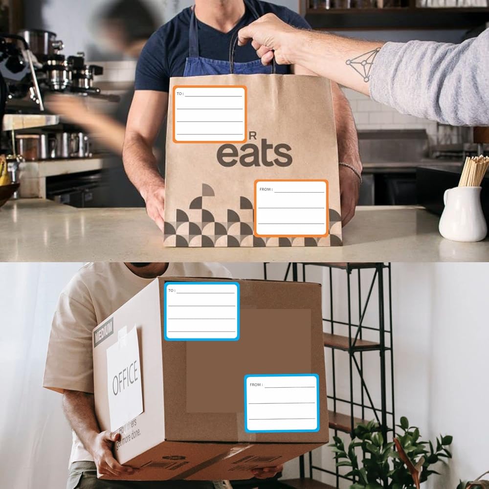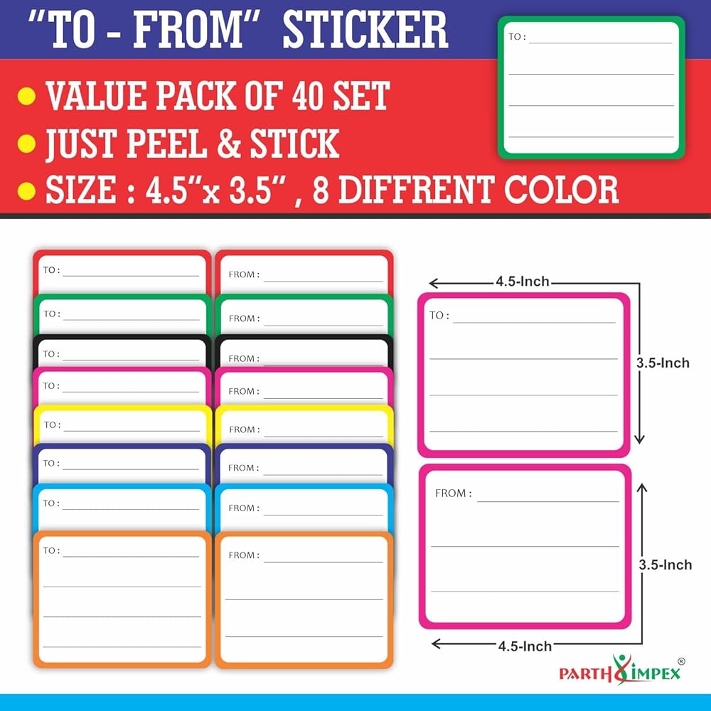 مجموعة مكونة من 40 قطعة: ملصقات بريدية فارغة في 8 ألوان مختلفة لافتة للنظر (40 إلى و40 من). زوايا مستديرة، سهلة الالتصاق على أي سطح أملس.