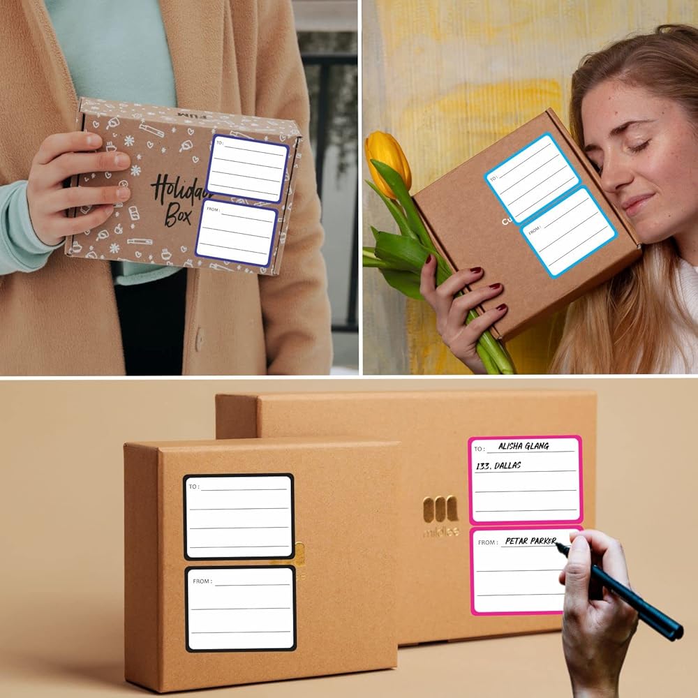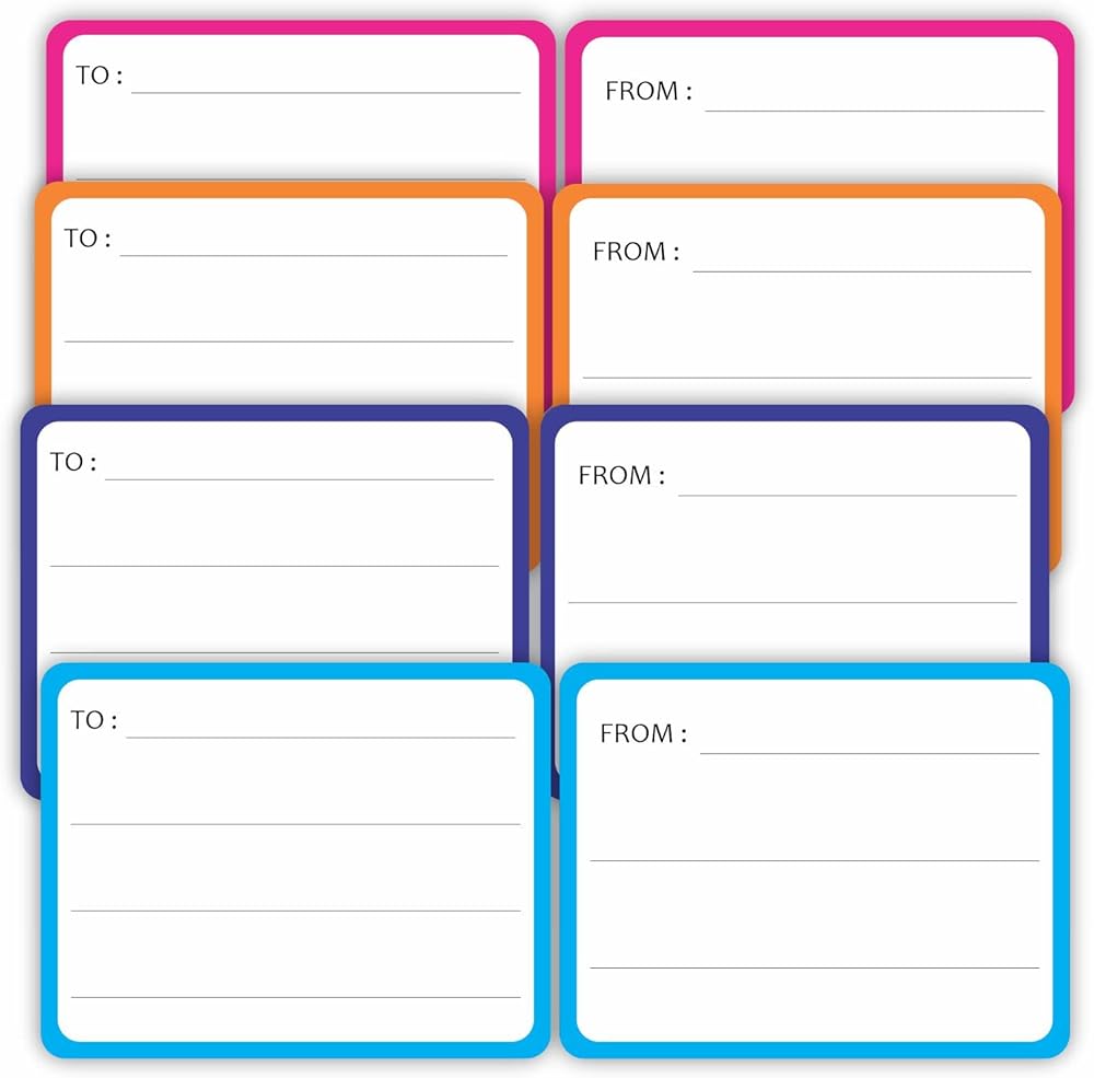 المقاس: ملصقات كبيرة مقاس 11.43 سم × 8.89 سم مع حواف متعددة الألوان، مساحة كافية لكتابة تفاصيلك. (استخدم قلم التحديد الدائم للكتابة)