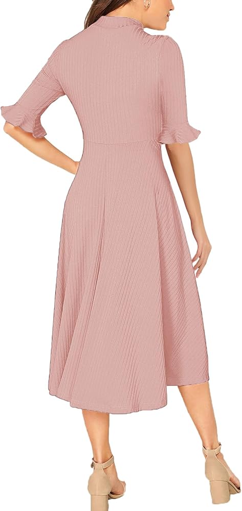 رقبة وهمية، أساور مكشكشة، نصف كم، حاشية واسعة واسعة، خط على شكل حرف A.