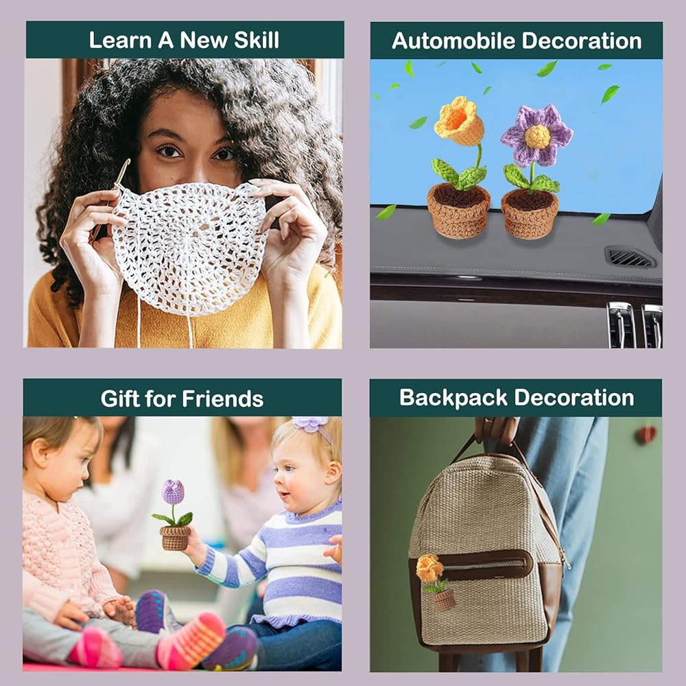 【هدايا كروشيه تدفئ القلب】تمثل مجموعات الكروشيه هذه الهدية المثالية للعائلات أو الأصدقاء. يمكن استخدام النباتات في الأصيص لإضافة لمسة من السحر إلى أي منزل أو سيارة، ويمكن صنعها بمفردها أو مع الأصدقاء للمشاركة في متعة الكروشيه. هذه المجموعات هي طريقة صادقة لإظهار تقديرك، ومن المؤكد أن أحبائك سيعتزون بها.