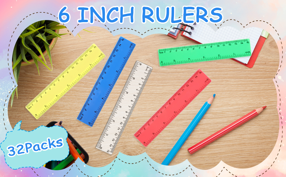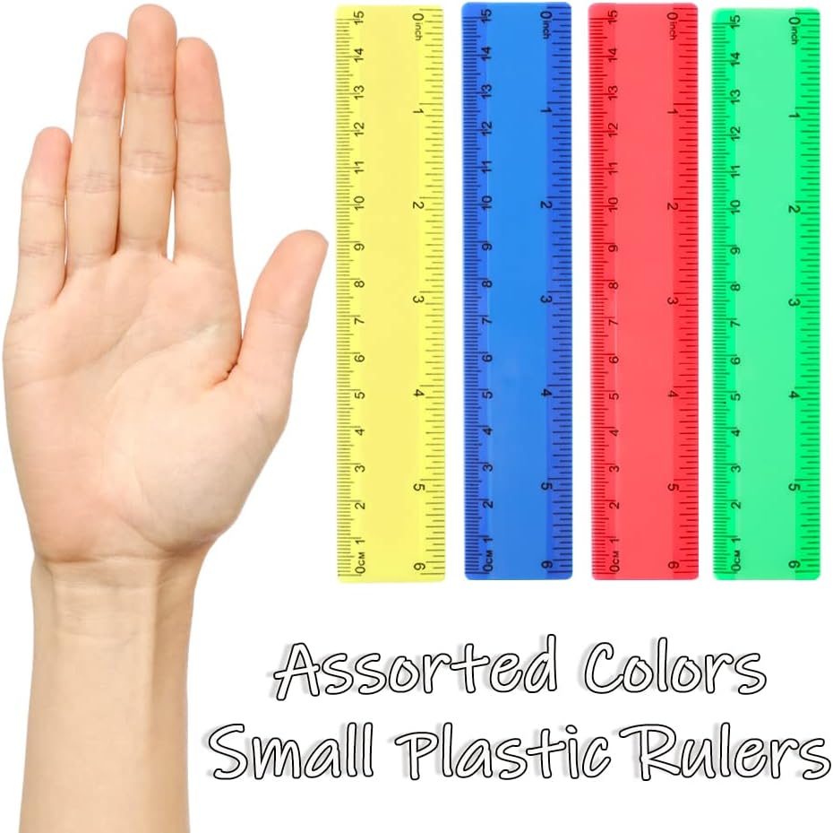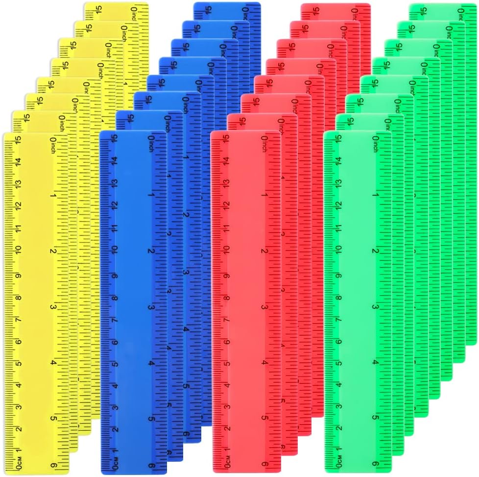 32 عبوة من مساطر بلاستيكية مقاس 6 بوصات مع مساطر قياس بوصة وسنتيمترات مساطر صغيرة للأطفال في الفصول المدرسية واللوازم المكتبية (ملونة)