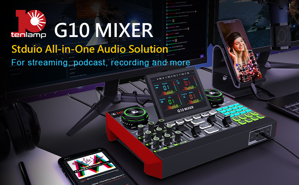 【مدخل ميكروفون XLR】يتم ضبط واجهة إدخال ميكروفون XLR واحدة على خلاط الصوت G10، وهو أمر رائع لتحسين جودة الصوت لديك من خلال إعداد XLR الخاص بك. يعد خلاط XLR بمثابة نقطة انطلاق لترقية البث المباشر الخاص بك. يقدم خلاط الصوت طاقة فانتوم مدمجة 48 فولت مما يفتح المزيد من الخيارات للميكروفونات. استخدمه مباشرة مع الميكروفون المكثف الخاص بك ولكن لا تتعامل مع الأجهزة الطرفية المضافة. (غير متوفر لميكروفون USB) علاوة على ذلك، يدعم G10 أيضًا المدخلات المتزامنة لميكروفون ديناميكي مقاس 6.35 مم، وميكروفون 3.5 مم، وميكروفون سماعة الرأس، مما يحقق مدخلات متعددة الأشخاص.