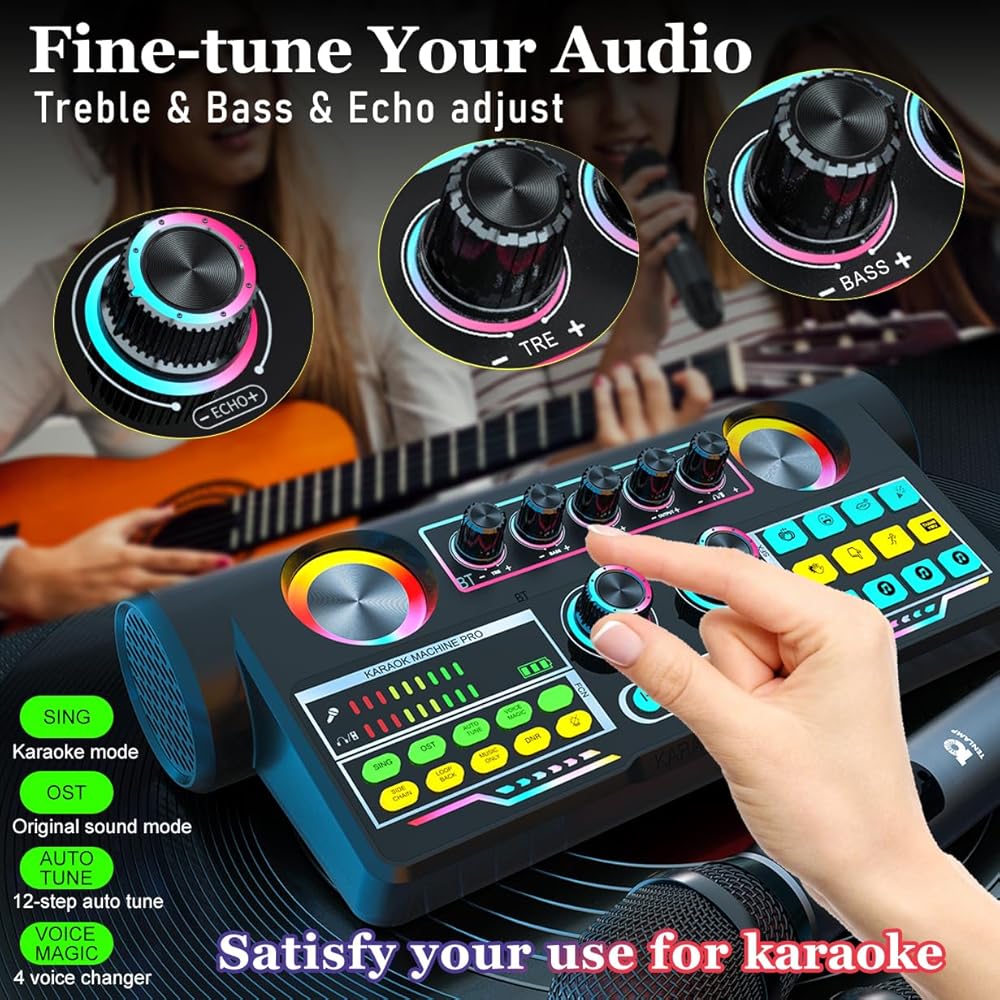 إحضار الاستوديو إلى المنزل: استخدم المؤثرات الصوتية بما في ذلك: الصوت الثلاثي، الجهير، الصدى، 4 مغير صوت، 12 خطوة ضبط تلقائي، لمزج الصوت الخاص بك في الوقت الحقيقي، وتحسين الغناء، وتغيير صوتك، وجعل صوتك أكثر ثراءً وملونة، وجعل صوتك أكثر احترافًا ومزيدًا من الترفيه.