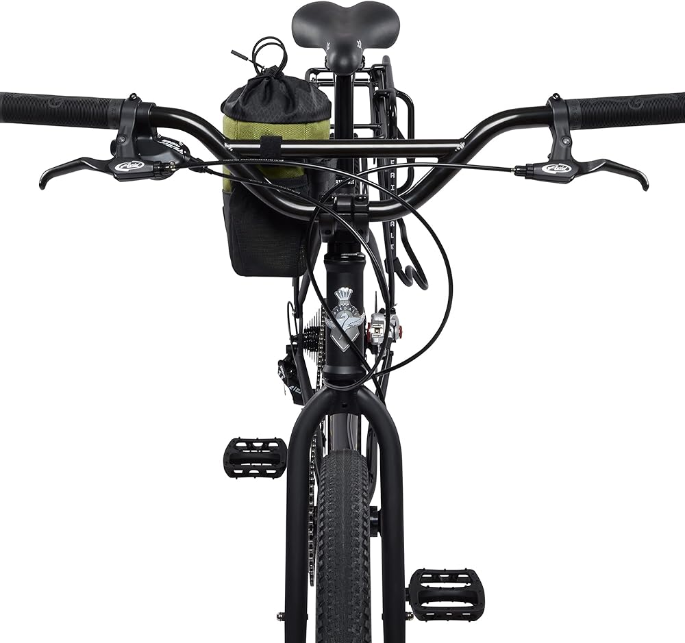 FEATURE RICH - This bike handlebar bag has a detachable shoulder strap for crossbody wear, roll top closure, hook and loop handlebar system, head tube stabilizer strap, padded protection with two internal pockets, and a waterproof construction.