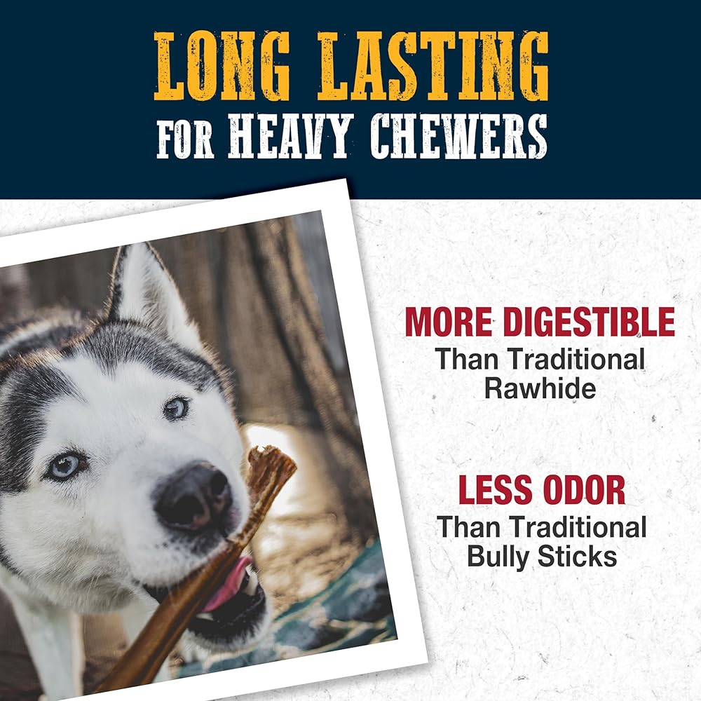 A NEW FRONTIER IN ALL-NATURAL DOG CHEWS Your dog will love the big bully taste, and you'll love the value! Cadet Bully Hide Sticks combine 2 of dogs' favorite natural chews: real bully stick and premium beef hide. We start with the select top layer of beef hide—the most digestible cut of rawhide available. Next, we wrap it with 100% real bully stick and oven-roast it to bring out the irresistible bully flavor…with less odor! More digestible than traditional rawhide, these dog chew sticks are also rich in collagen and support a healthy smile. ABOUT CADET NATURAL DOG CHEWS Keep the adventure going with long-lasting dog chews that satisfy your best friend's ancestral need for protein! Responsibly sourced, these natural dog treats are made from single or limited ingredients you can trust. Plus, they help clean teeth as dogs chew. Your dog will stay happily occupied throughout their chewing journey with these wholesome chews! MEET CADET The Cadet adventure began with an idea to create healthy dog treats and chews sourced from nature. Affectionately named after our founder's first dog, the Cadet brand was born out of love for furry friends everywhere. Over 30 years later, our dog-inspired name still guides everything we do! PREMIUM QUALITY IS OUR PLEDGE As pet parents ourselves, we know it's frustrating to receive natural dog products that are burnt, broken, unclean, or otherwise disappointing. That's why Cadet dog chews and treats undergo a rigorous inspection process here in the USA to guarantee they meet our high standards. Satisfy your best friend with rewards you can both feel good about!