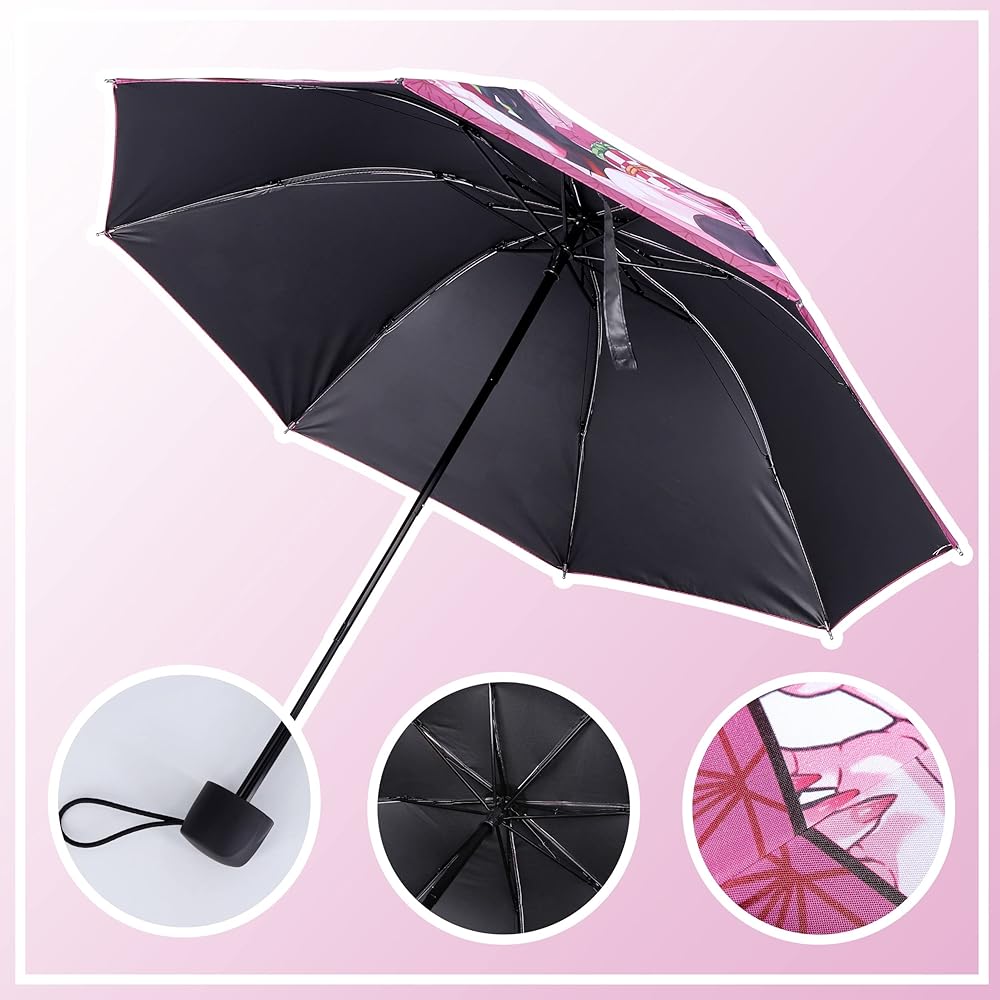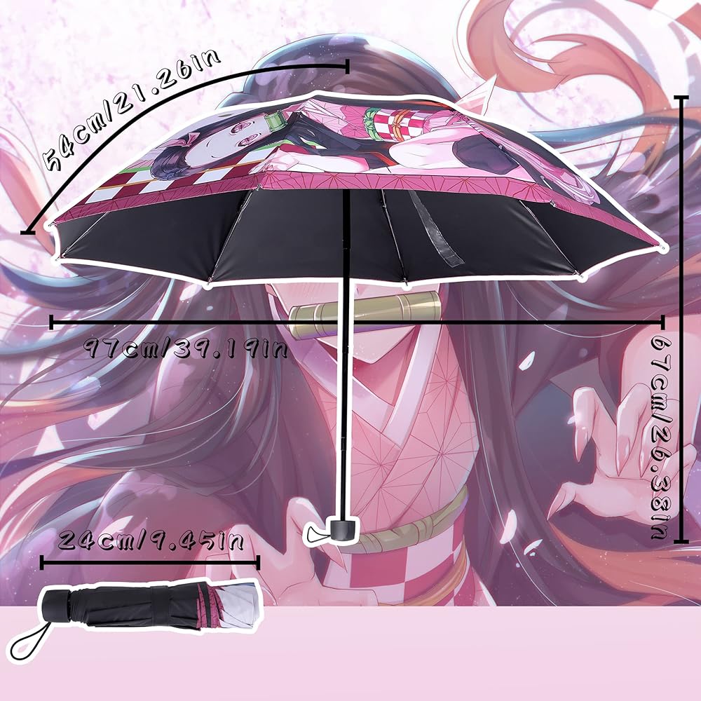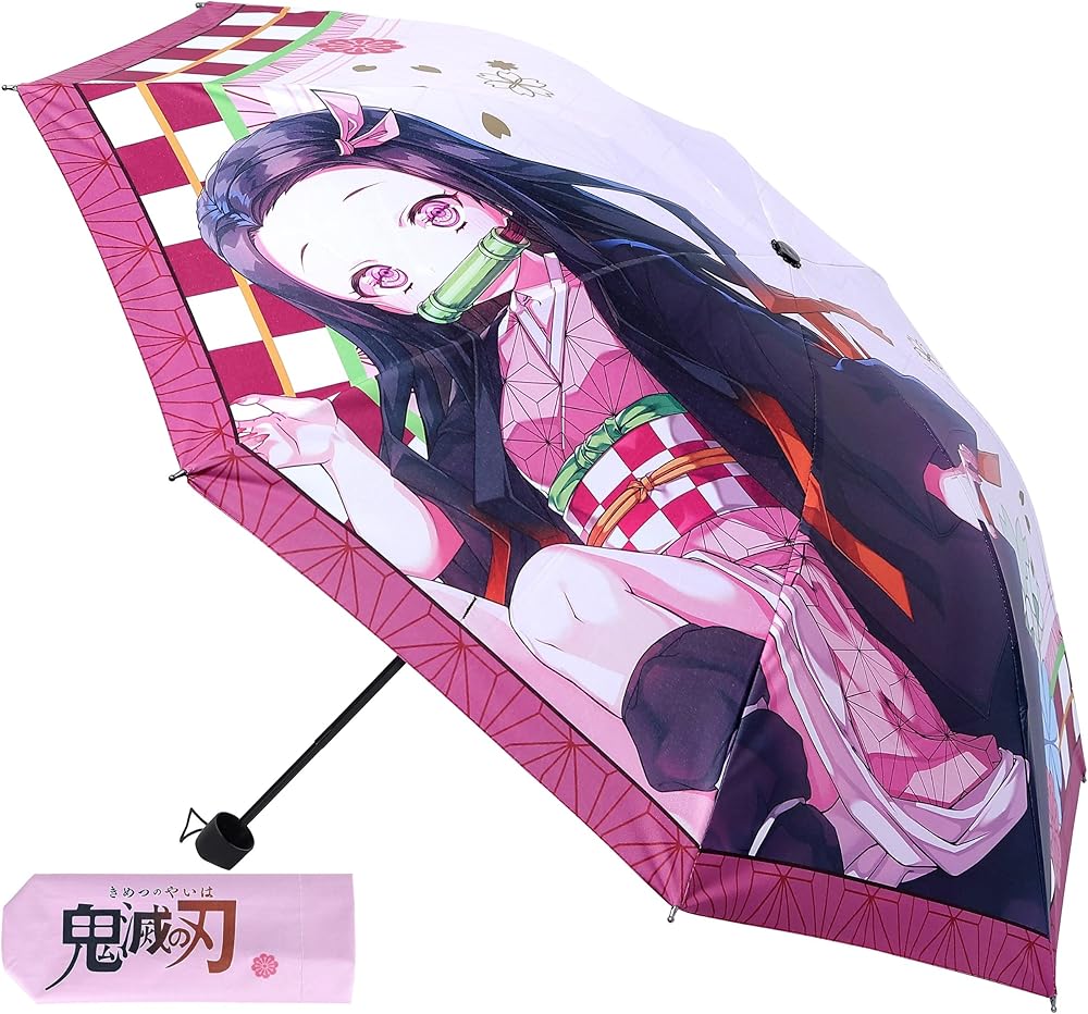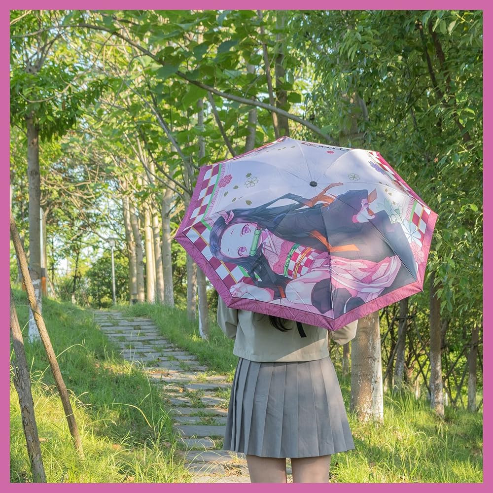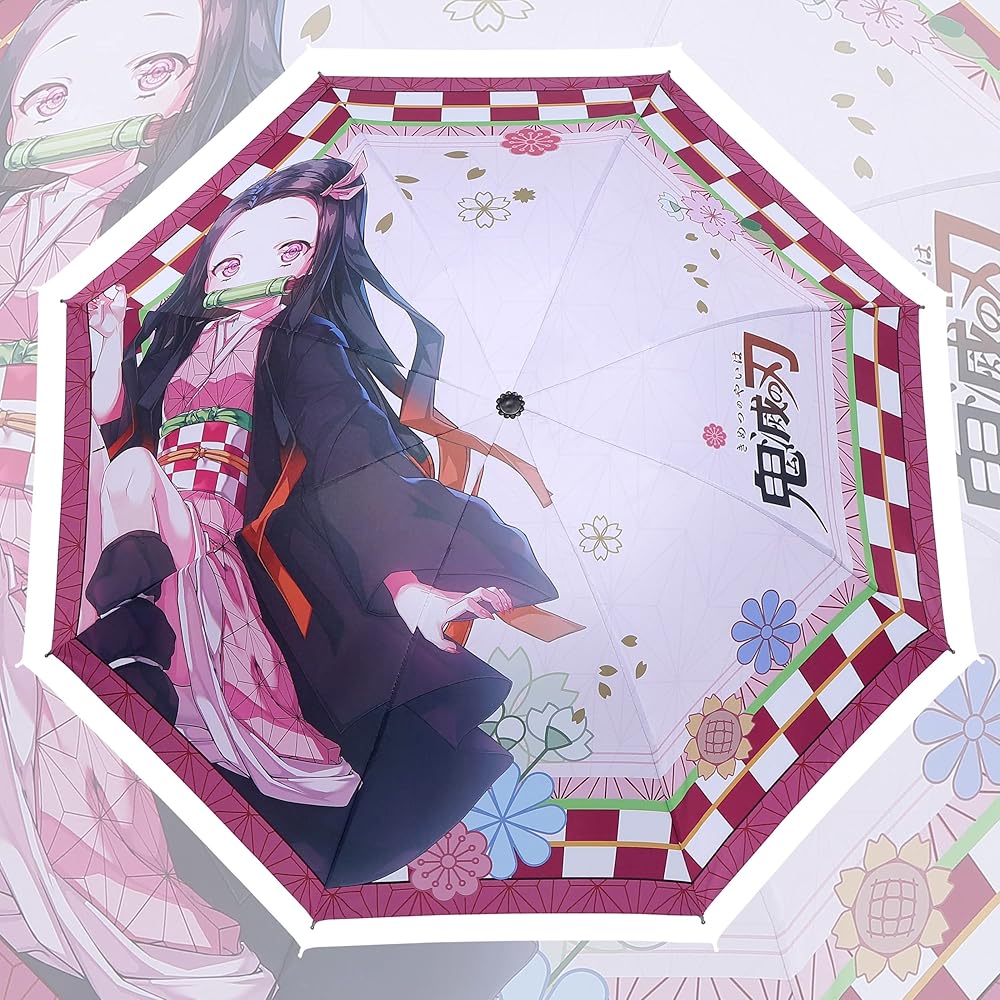☂ Anime Umbrella: A pink - white grid and geometrical line are used as the background color and with printed Kamado Nezuko. It is a perfect gift for Demon Slayer Kimetsu no Yaiba fans.