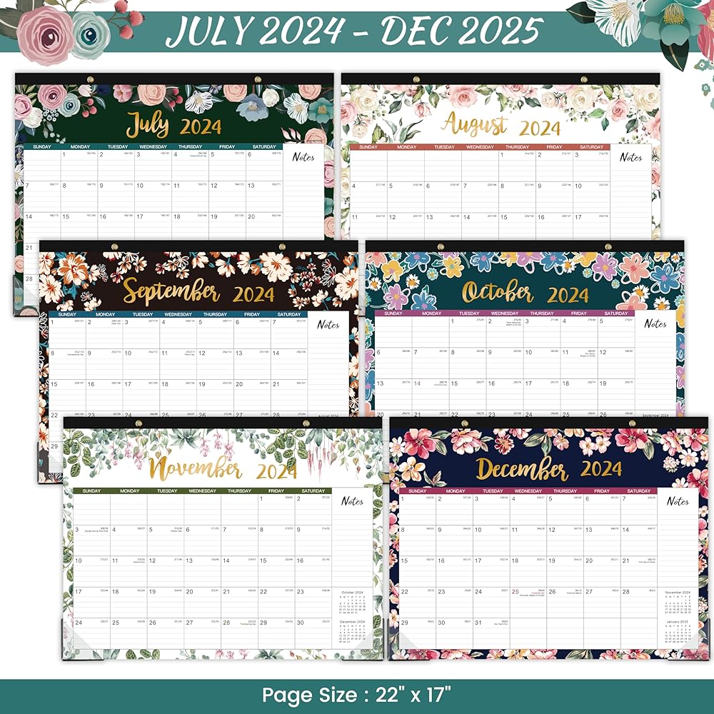 • ☀ تقويم مكتبي كبير 2024-2025 - يغطي هذا التقويم المكتبي 18 شهرًا من يوليو 2024 إلى ديسمبر 2025 مع العطلات المميزة. ركز على التخطيط السهل والفعال للعام بأكمله لإدارة حياة ناجحة.