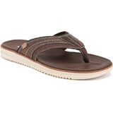 Mens thong sandals with easy style and comfort, sunup to sundown. SUSTAINABLY CRAFTED: Low chemical faux leather linings and topcloth. MATERIALS: Faux leather and fabric upper. FIT: Slip on fit for easy on/off. SUSTAINABLE COMFORT: Anti-odor Insole Technology with cushioning, comfort, & arch support that uses cushy plant-based BLOOM® foam insole. MOVEMENT: Lightweight, flexible construction moves with you. STYLE: Mens thong sandals with cool stitch detailing and 1 inch sport sole. CONSCIOUSLY PACKAGED: This style is shipped in an environmentally preferred 1-piece box made with primarily recycled materials that can be recycled & soy-based inks. Beach shoes for men crafted with enough comfort to double as on-the-go walking shoes.