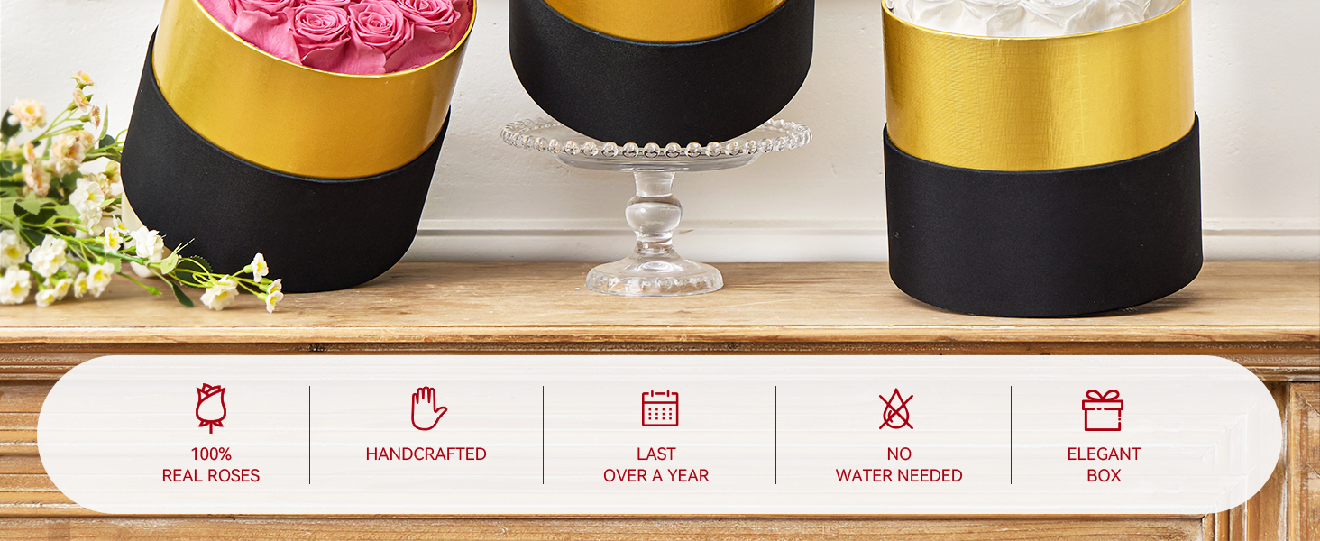 وردة حقيقية 100% - يتم اختيار ورودنا المحفوظة يدويًا في ذروة نضارتها وترتيبها بعناية في مجموعة متنوعة من الألوان والأنماط والمظهر من قبل بائعي الزهور الرئيسيين لدينا.