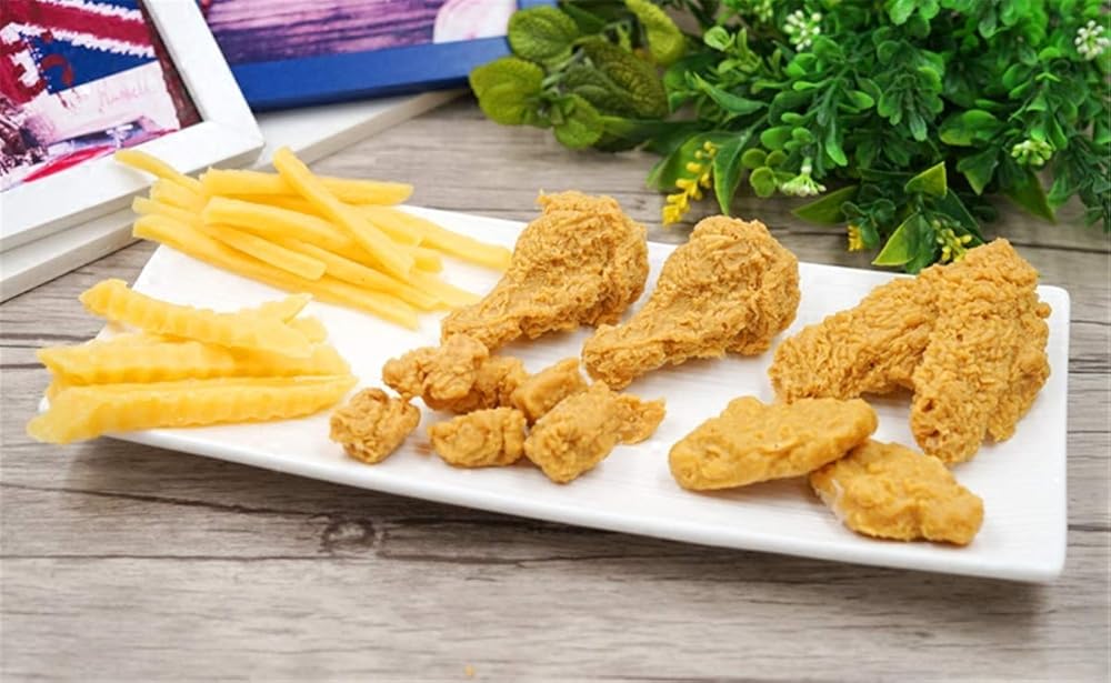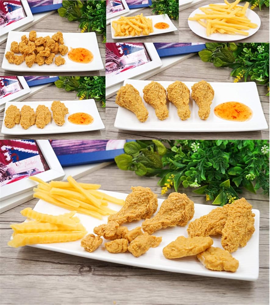 Zzooi قطعة دجاج صناعية صناعية بمظهر واقعي، نموذج عرض دجاج مقلي مزيف، 3 قطع